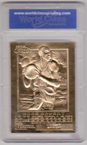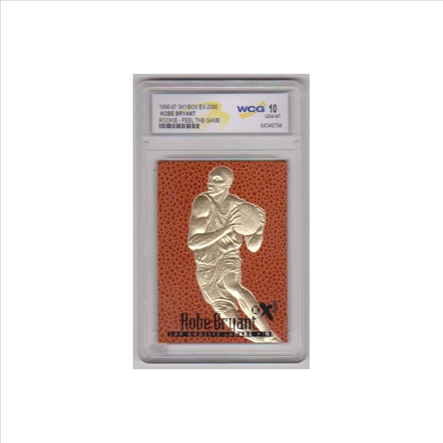This is a 1996-97 Skybox EX-2000 Feel The Game 23 Kt Gold Kobe Bryant rookie card that has been graded a Gem Mint 10 by WCG. There are a couple of small light surface scuffs on the front of the holder, but overall this is a sharp graded rookie card of this NBA Hall of Famer.