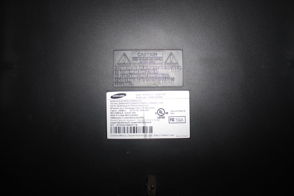 Get a great deal with this online auction presented by PropertyRoom.com on behalf of a law enforcement or public agency client. Model: Samsung LN52B610A5F 52 Inch LCD TV Screen Size: 52 inch Date of Manufacture: Aug 2009 Measurements: Approx 50 1/4" x 31 1/4" Base: none Remote Control: none Power Cord: none Physical Condition: good to fair condition, has visible wear, is a little dirty, has some scratches and scrapes. Has stickers on the body, may be difficult to remove. Testing Results: Item was tested for power only and it powered on, displayed menu. Input and output ports were not tested and may be non-functional. Item is sold "As Is".
