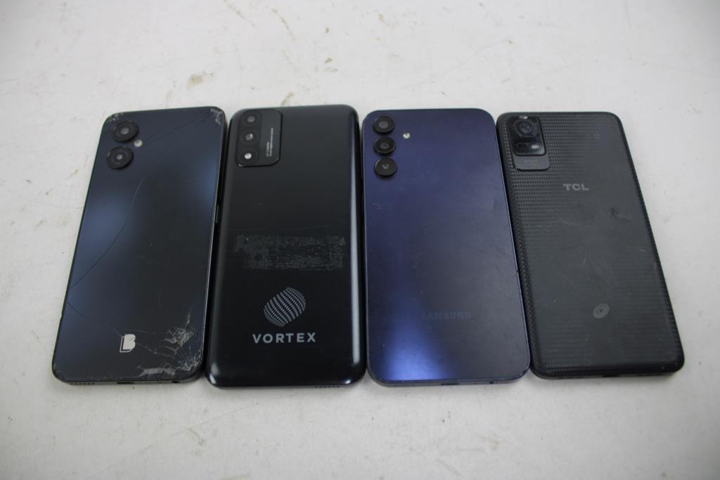 Samsung, TCL, BLU, Vortex Cell Phone Lot, 4 Pieces, Sold For Parts