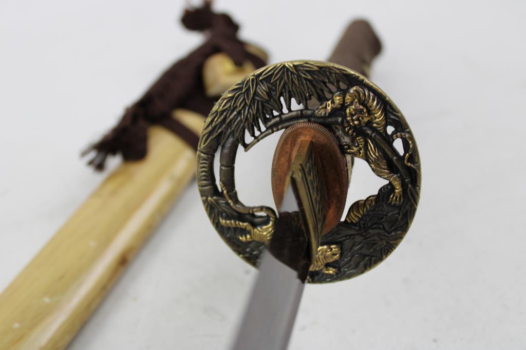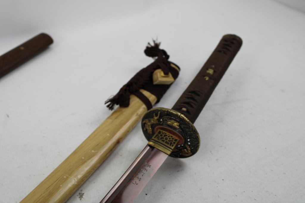 Samurai Sword With Wooden Sheath, 30" Wooden Handle Sword, 2 Pieces