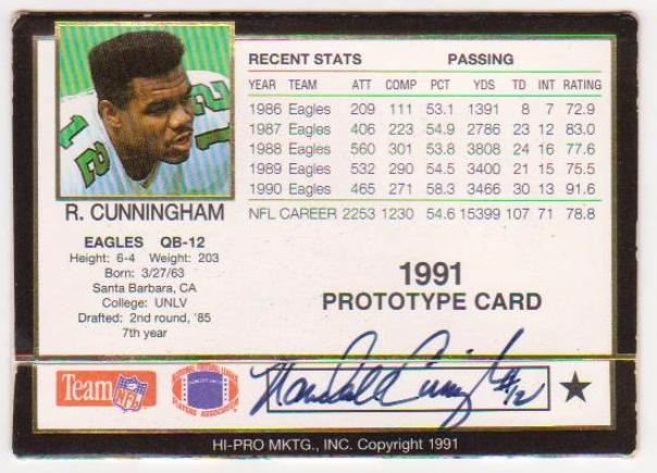 PropertyRoom.com's trusted merchant, Sports Collectibles, presents this online auction for the above Signed - RANDALL CUNNINGHAM 1991 Action Packed Prototype - All-Pro Autograph.