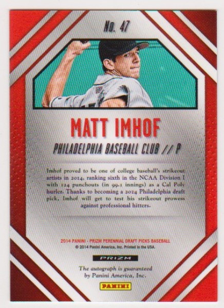 Signed Rookie - Matt Imhof 2014 Panini Prizm Perennial Draft Picks #47 Certified Autographed Insert Card