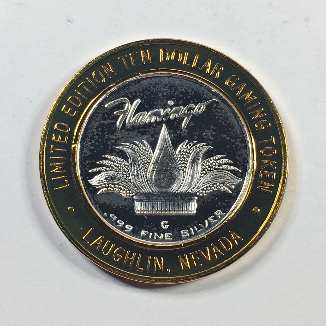 SILVER STRIKE*Flamingo Laughlin; Laughlin, NV $10 Collector's Limited Edition Gaming Token*.999 Proof Silver