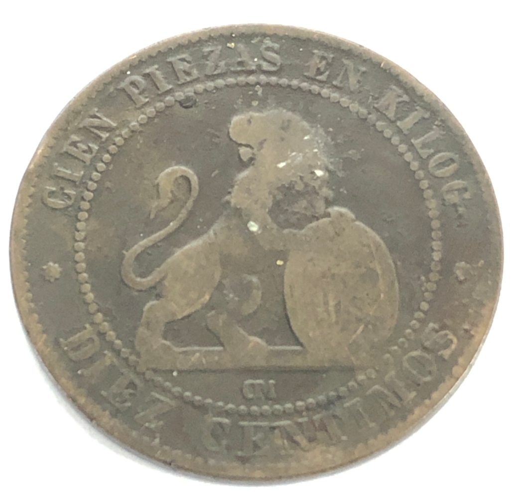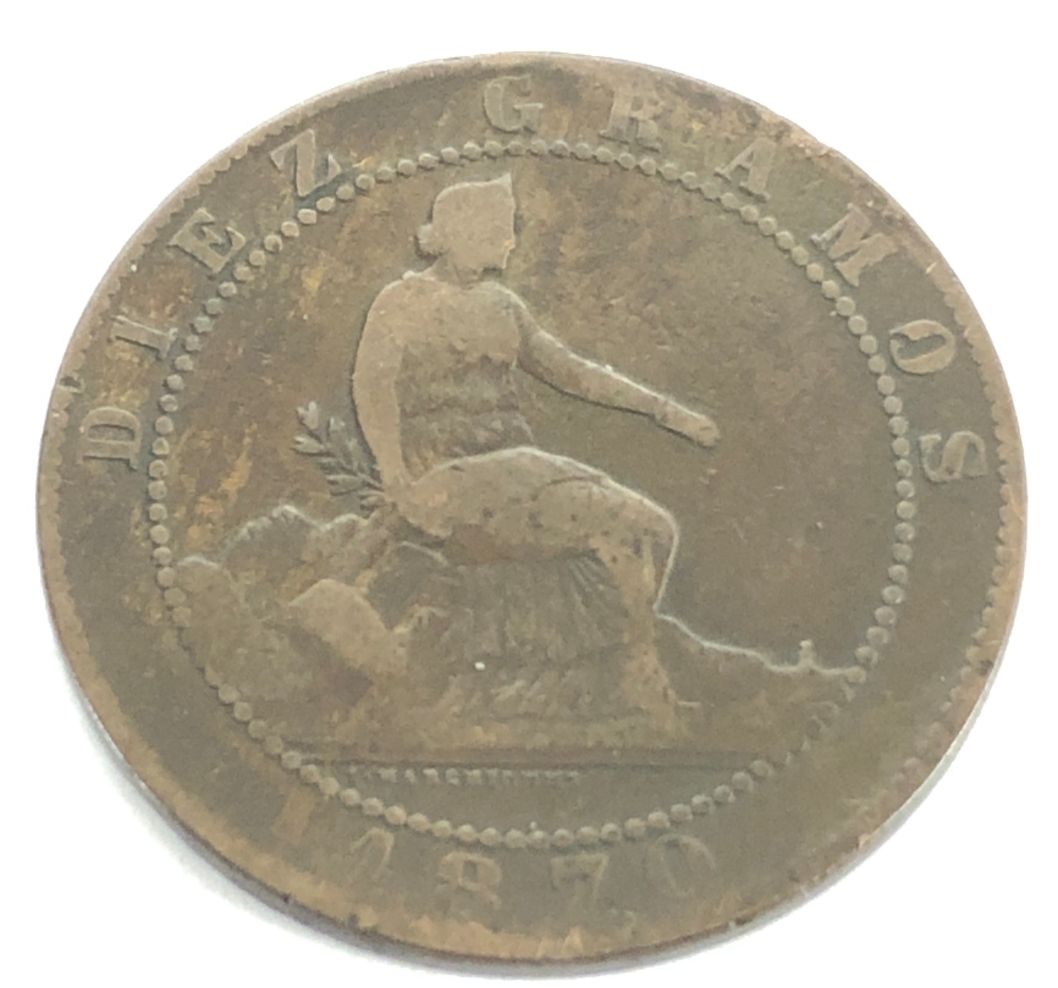 Spanish provisional government 1868-1870 Spain. Diez Centimos, 1870.