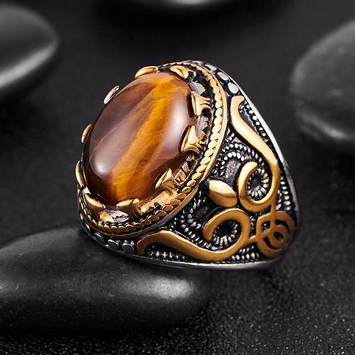 Special Design 18k Gold Overlay 22.00ct Tiger Eye Unisex Ring Size 10