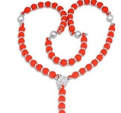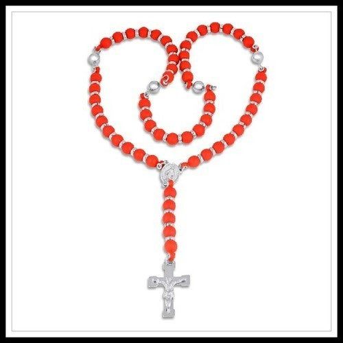 Stainless Steel & Red Silicone Necklace, Prayer Beads
