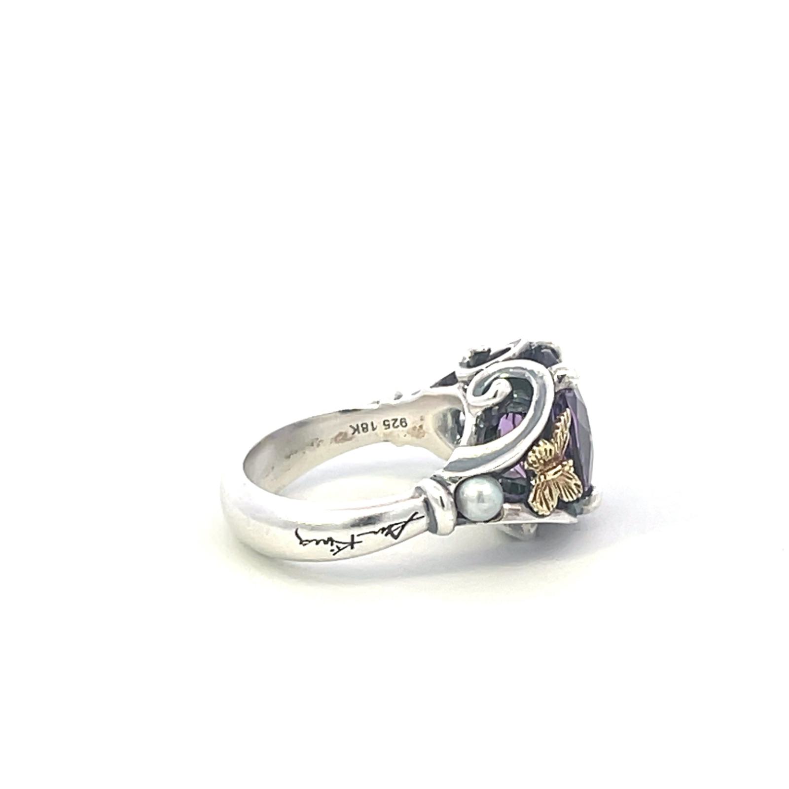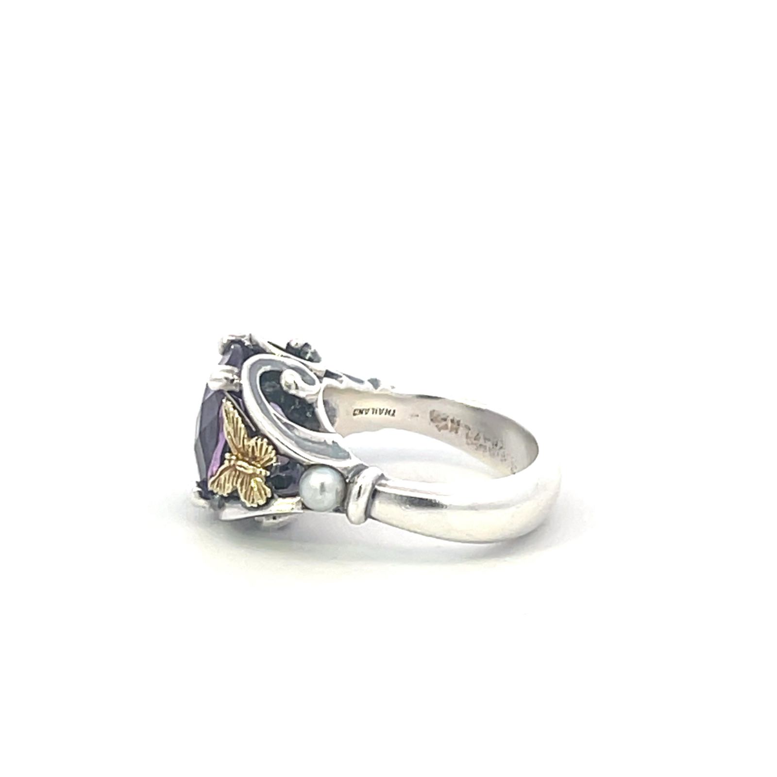 Sterling Silver 18k Gold Amethyst Pearl Butterfly Ann King Ring, Size 6