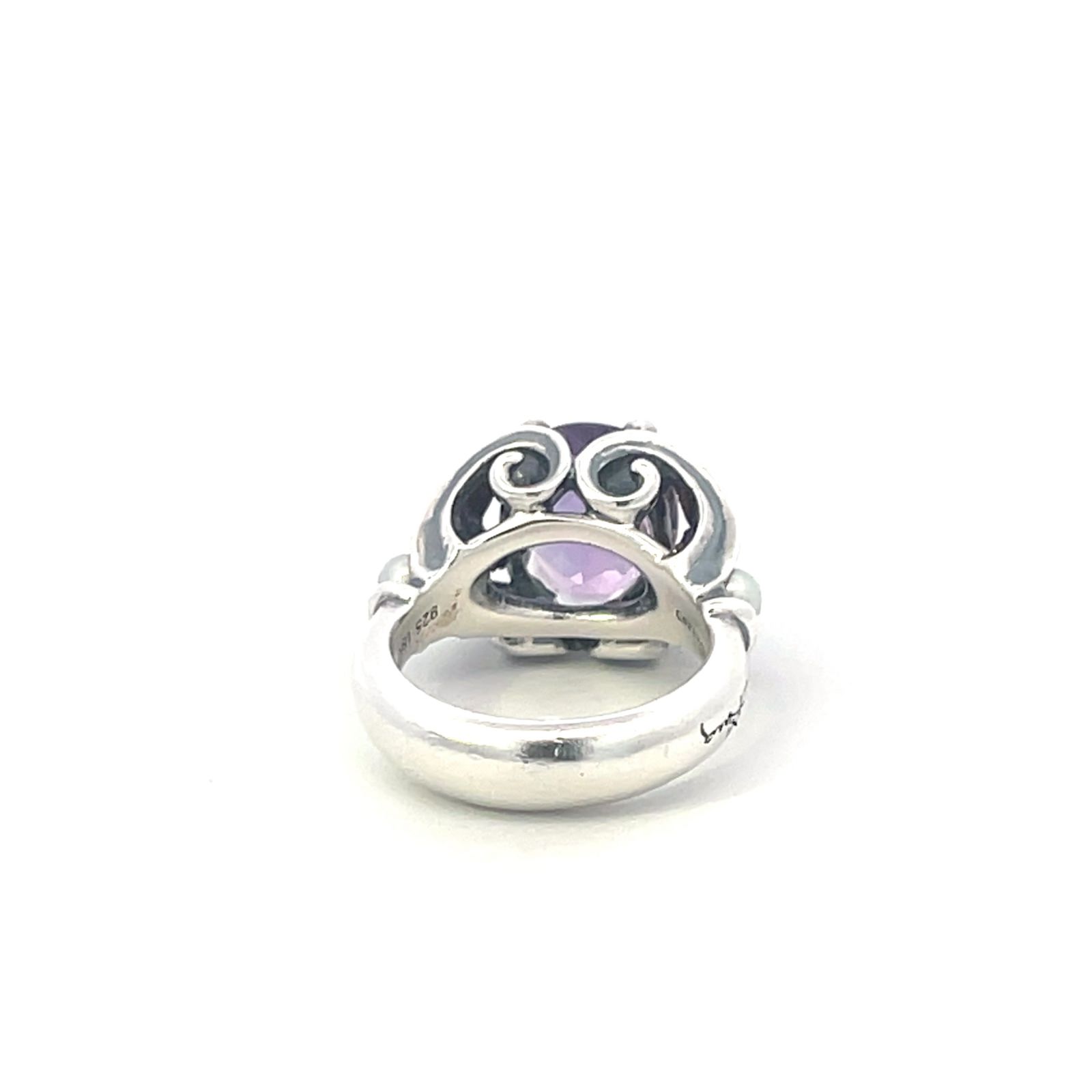 Item:  Sterling Silver 18k Gold Amethyst Pearl Butterfly Ann King Ring, Size 6