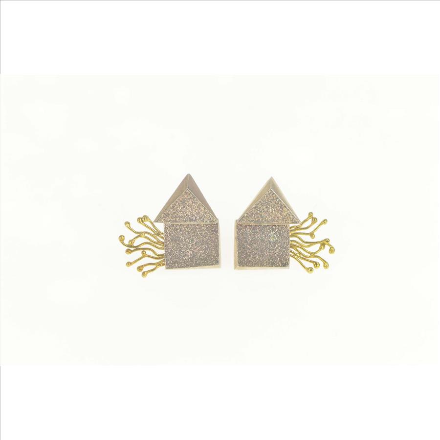 Sterling Silver 18k Two Tone Abstract Geometric House Earrings
