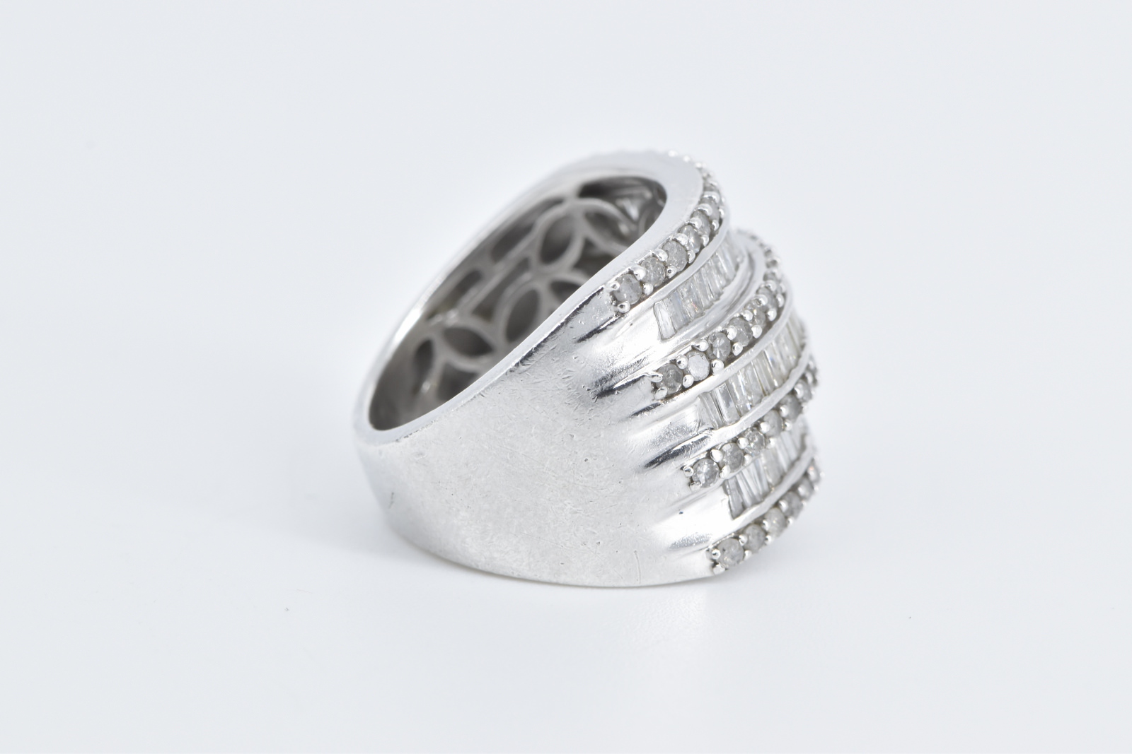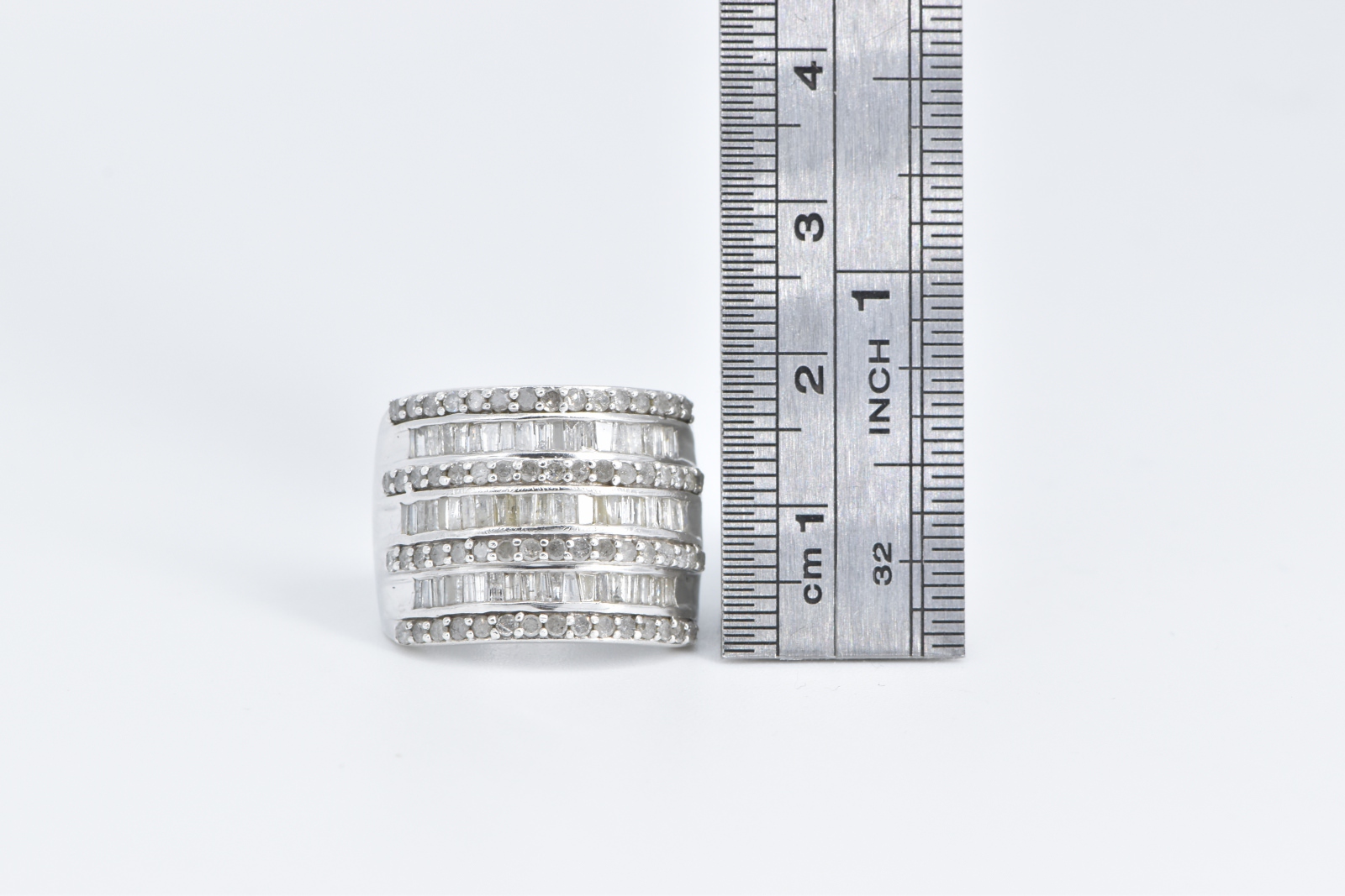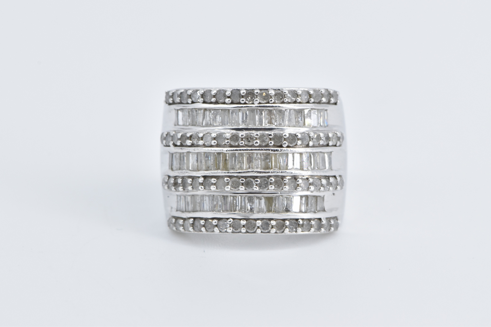Item:  Sterling Silver 2.00 Ctw Layered Diamond Row Statement Band Ring, Size 7