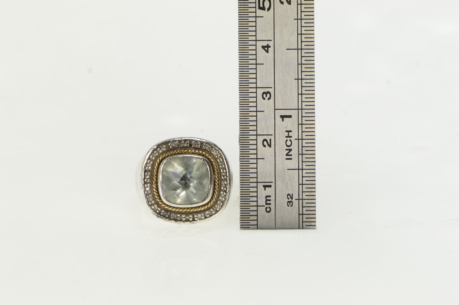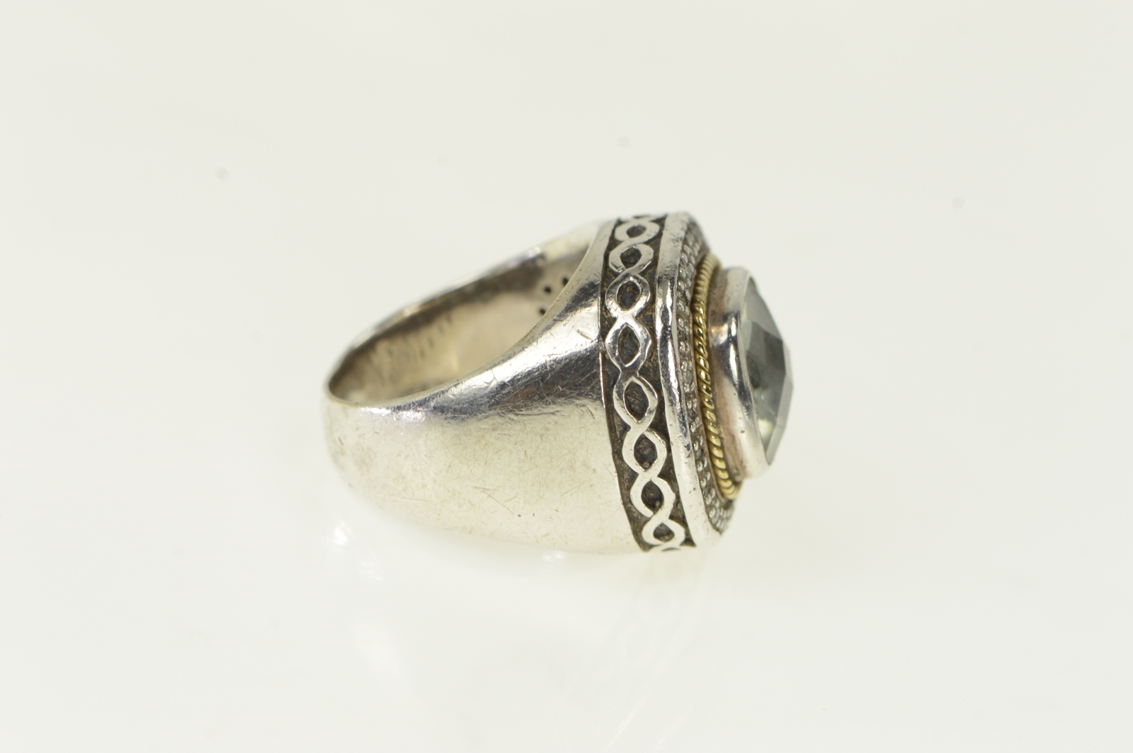 Notes:  This ring is composed of sterling silver with 18k solid gold accents. Marked BJC for Benham Jewelry.