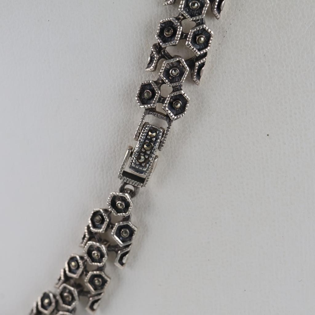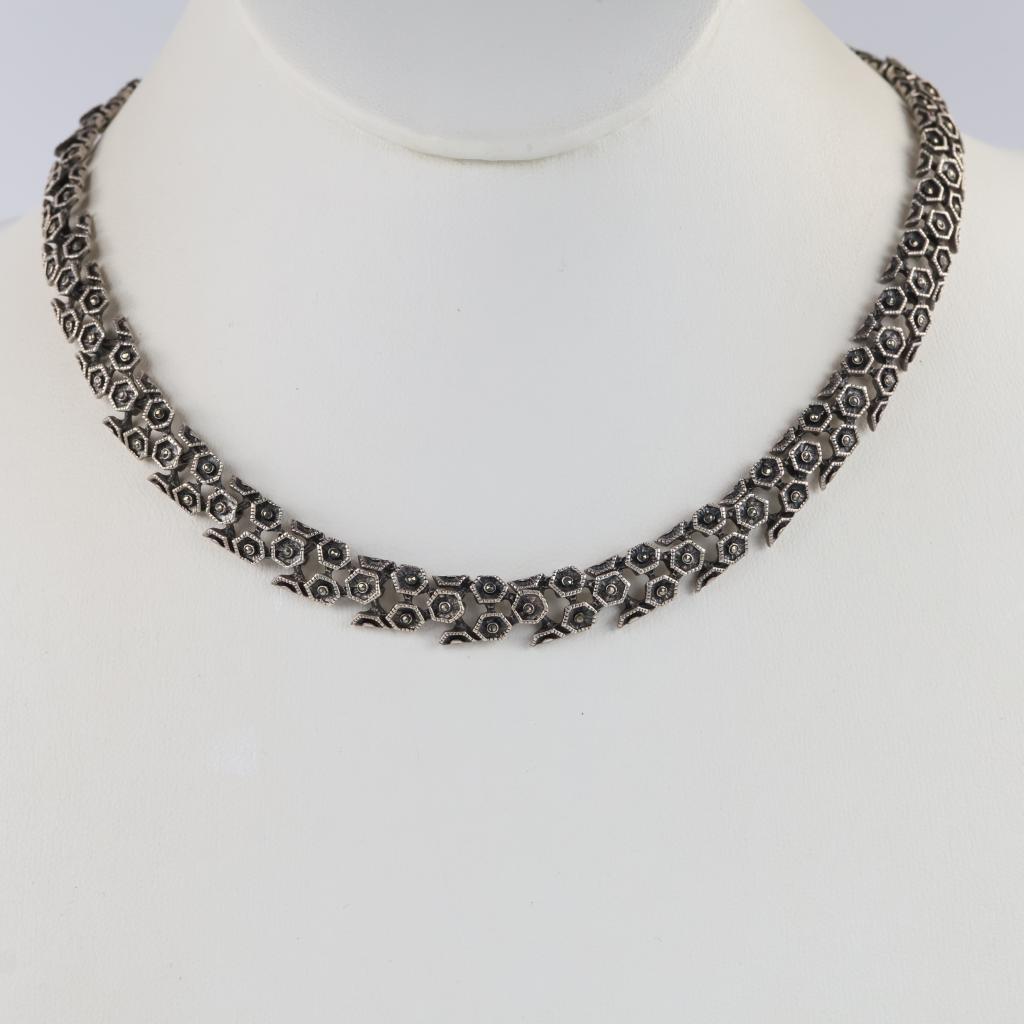 Sterling Silver Black Stone Fancy Link Necklace