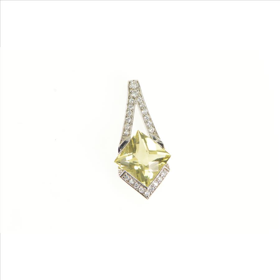 Sterling Silver Faceted Citrine Squared CZ Accent Drop Pendant