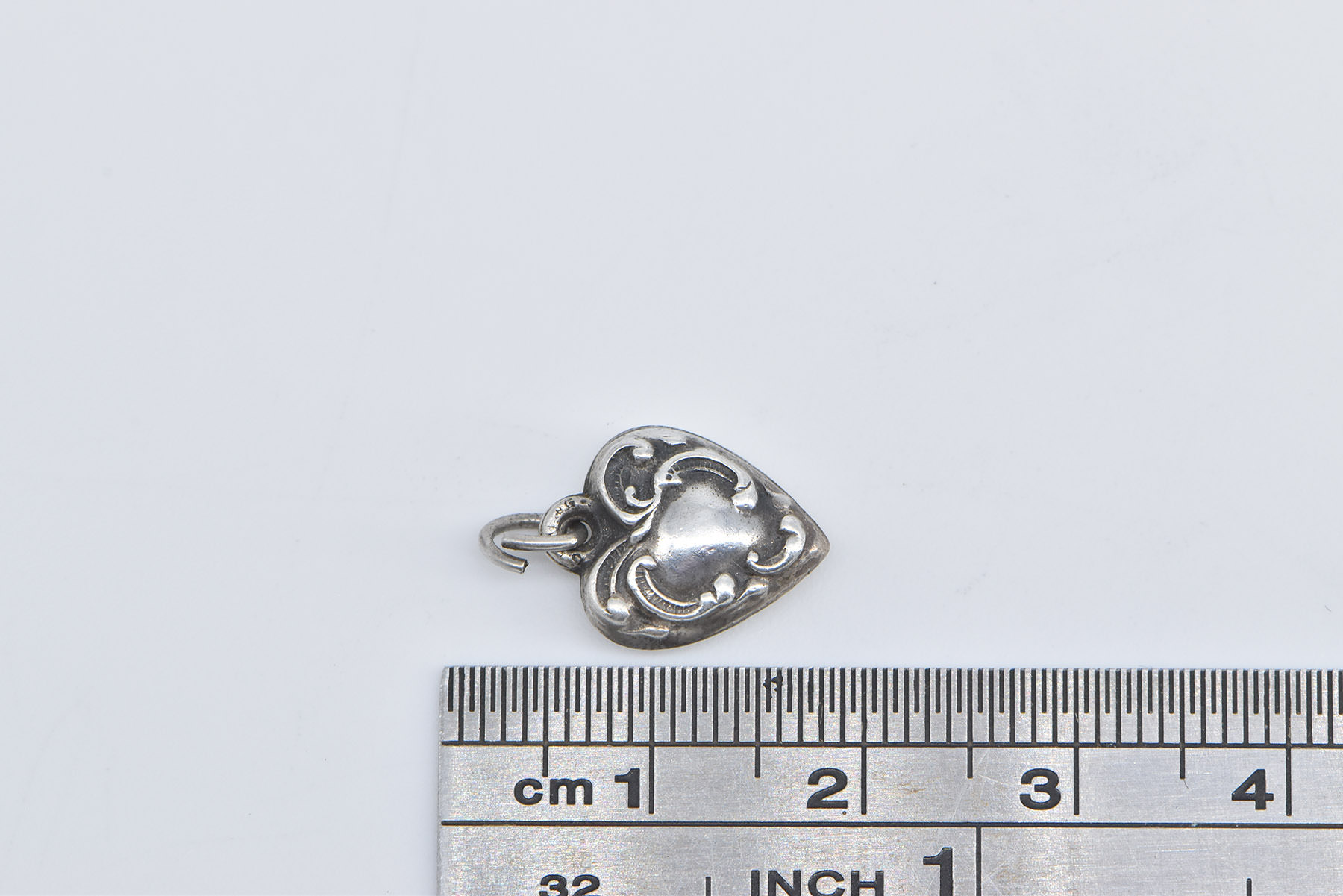 Item:  Sterling Silver Heart Puffy Forget Me Not Love Loyalty Charm/Pendant