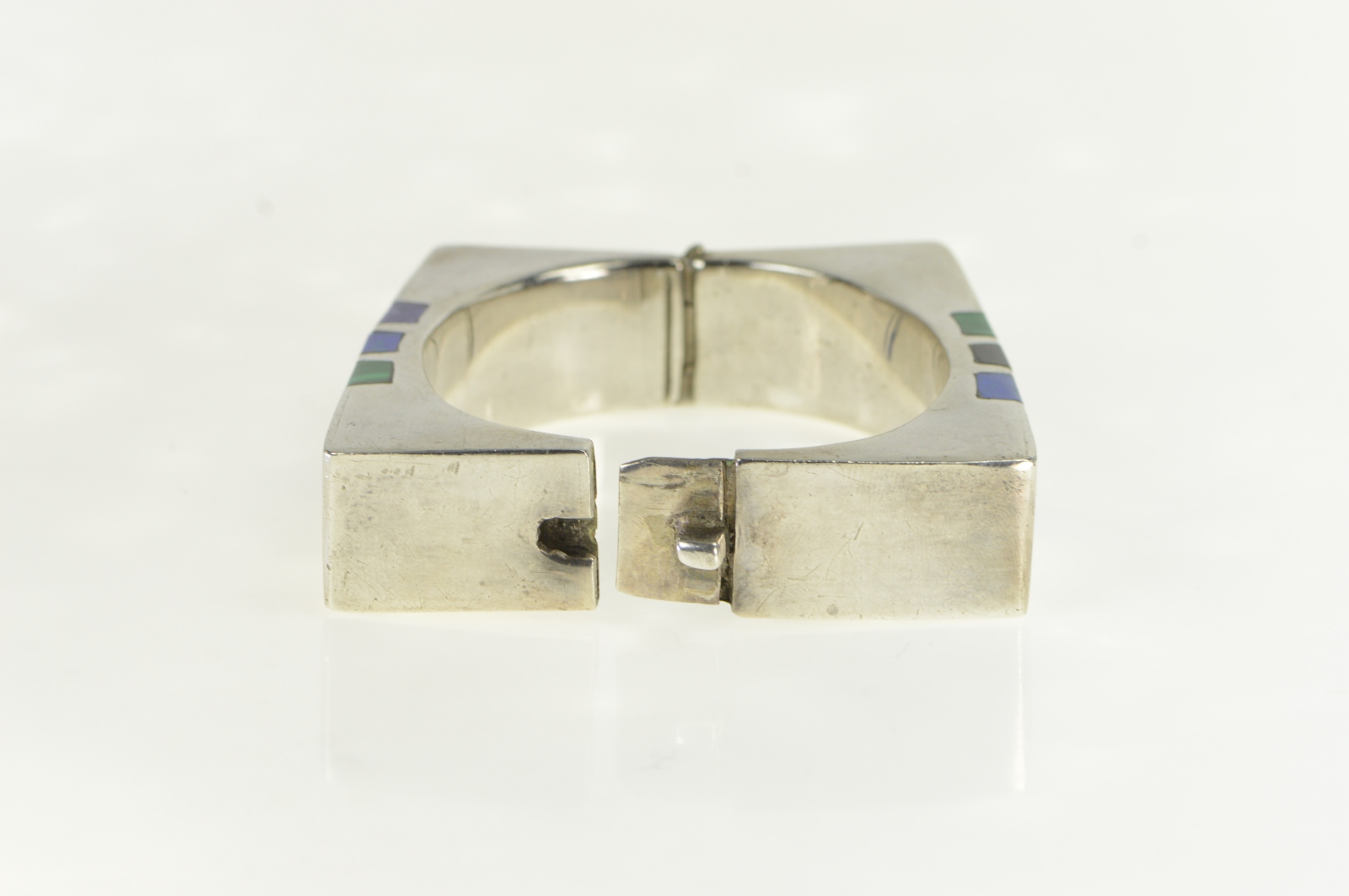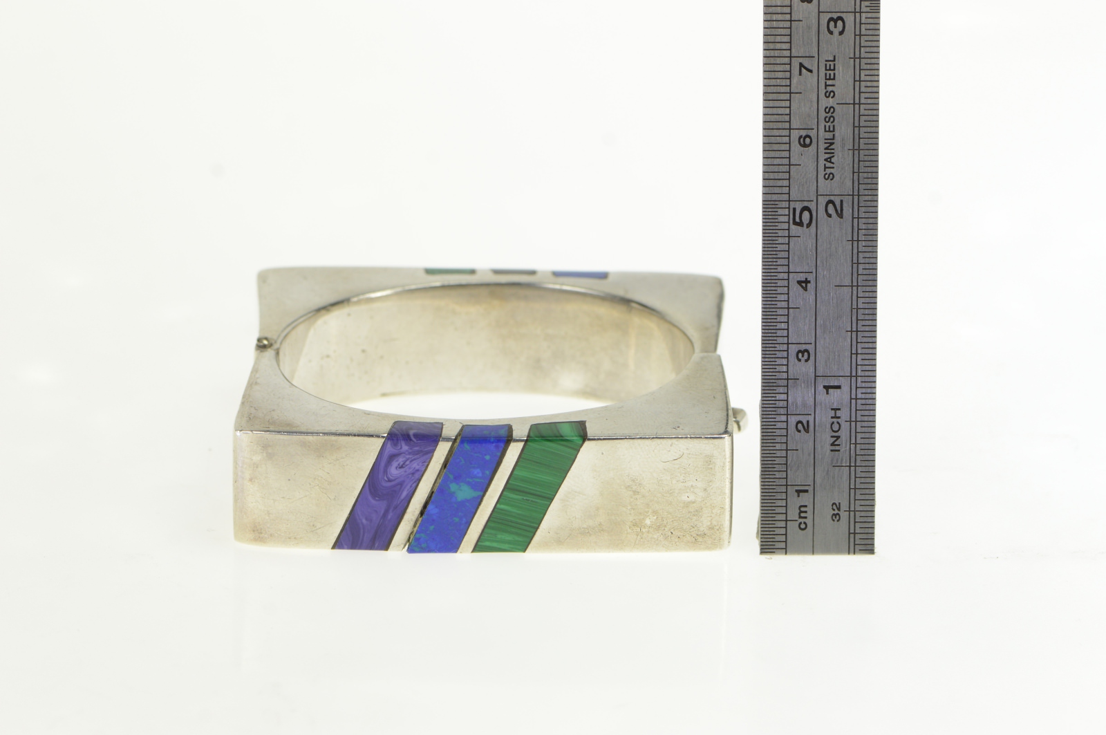 Item:  Sterling Silver Lapis Sugilite Malachite Square Bangle Bracelet 6.5"