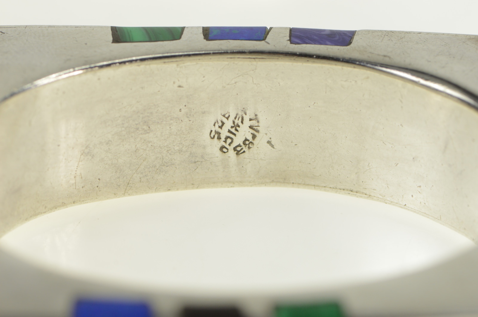 Sterling Silver Lapis Sugilite Malachite Square Bangle Bracelet 6.5"