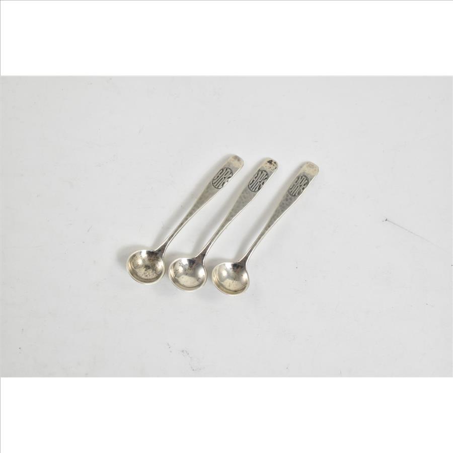 Sterling Silver Monogram H R K Mid Century Salt Spoon Set (3pcs)