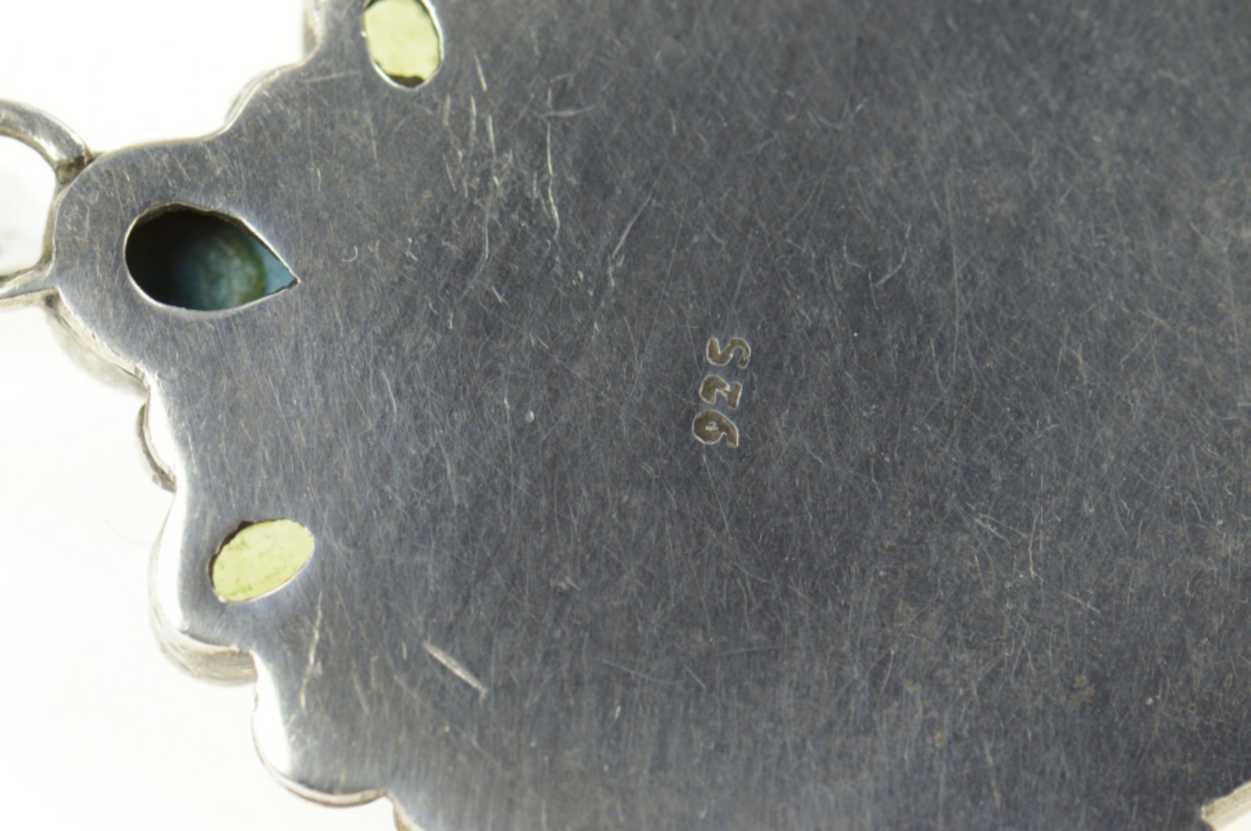 Sterling Silver Moon Face Black Opal Turquoise Peridot Ornate Pendant