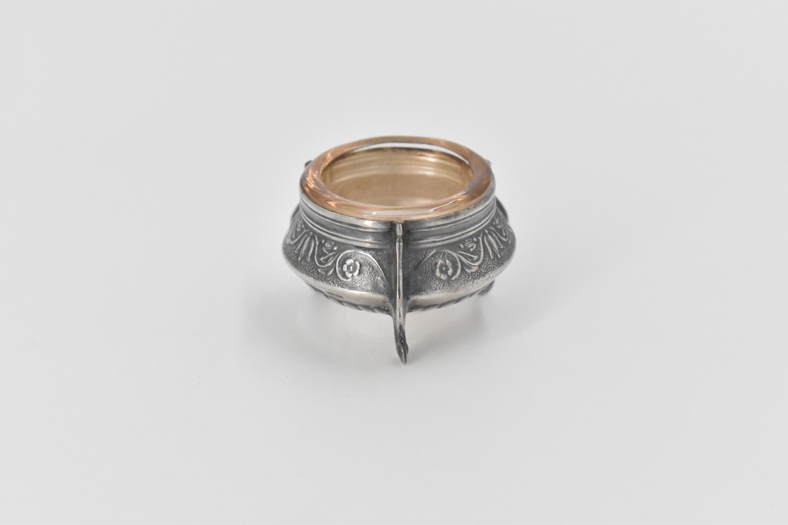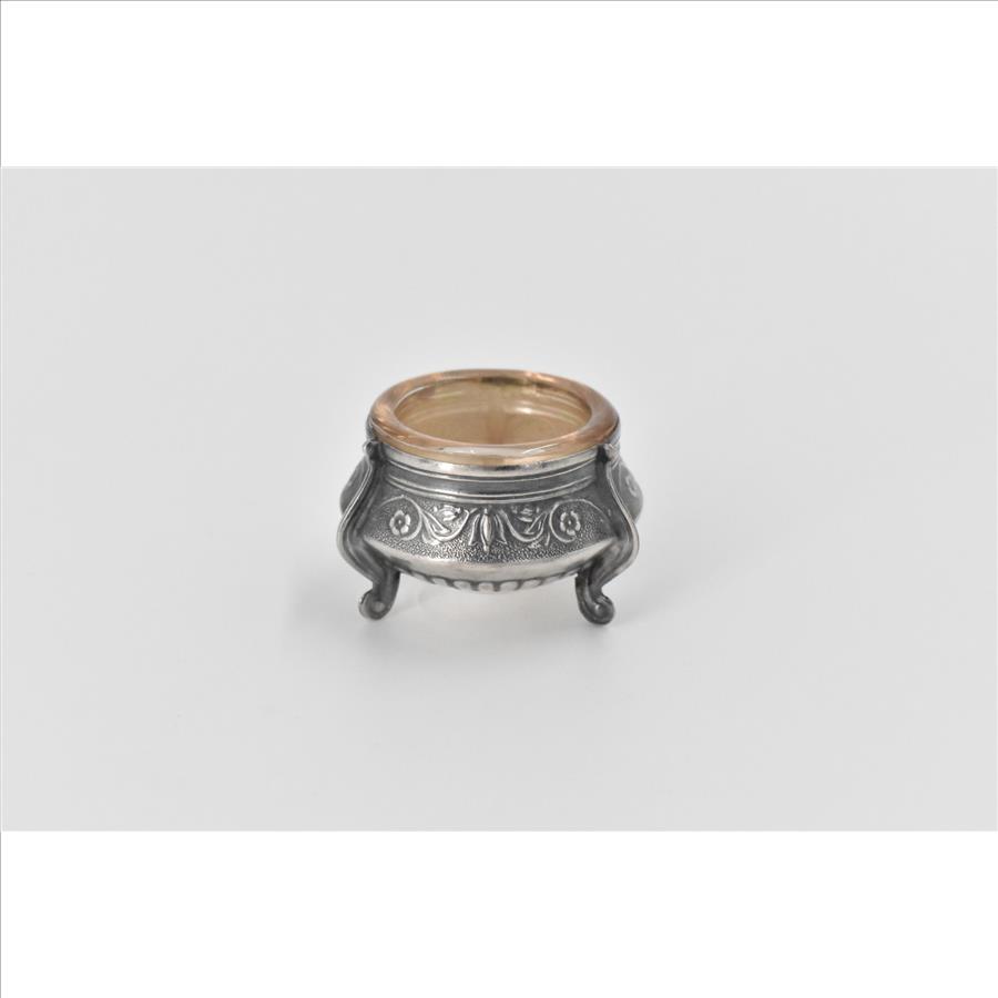 Sterling Silver Ornate Antique Scroll Embossed Salt Cellar