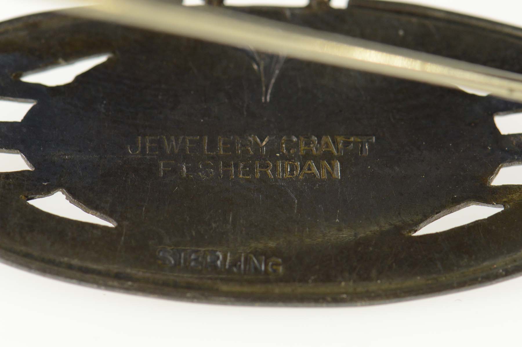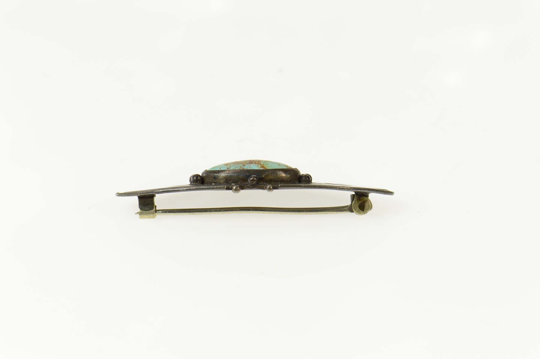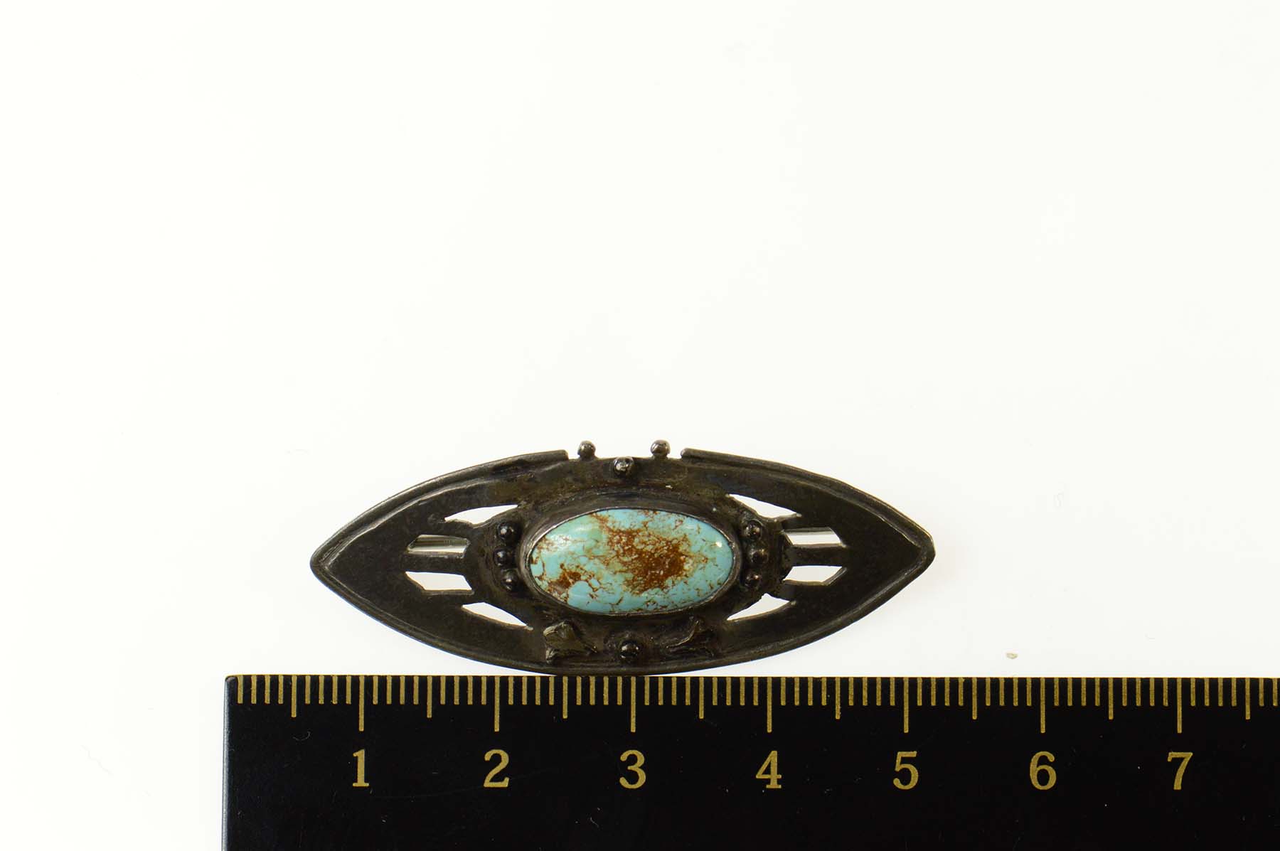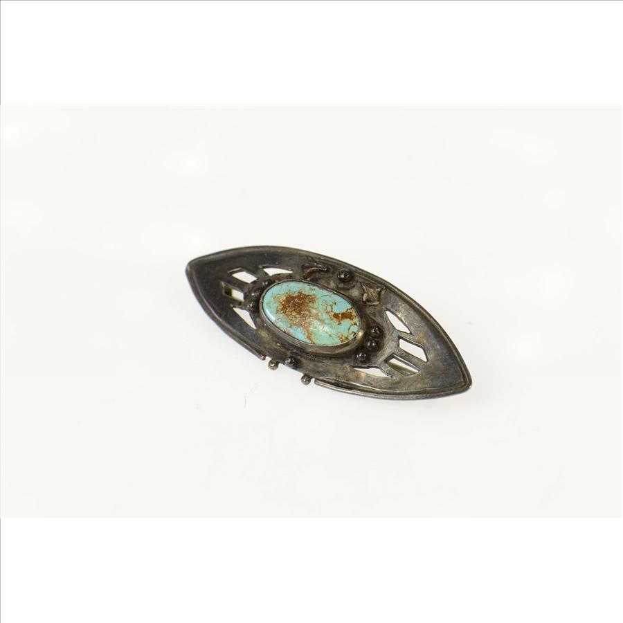 Item:  Sterling Silver Ornate Turquoise Marquise FT Sheridan Pin/Brooch