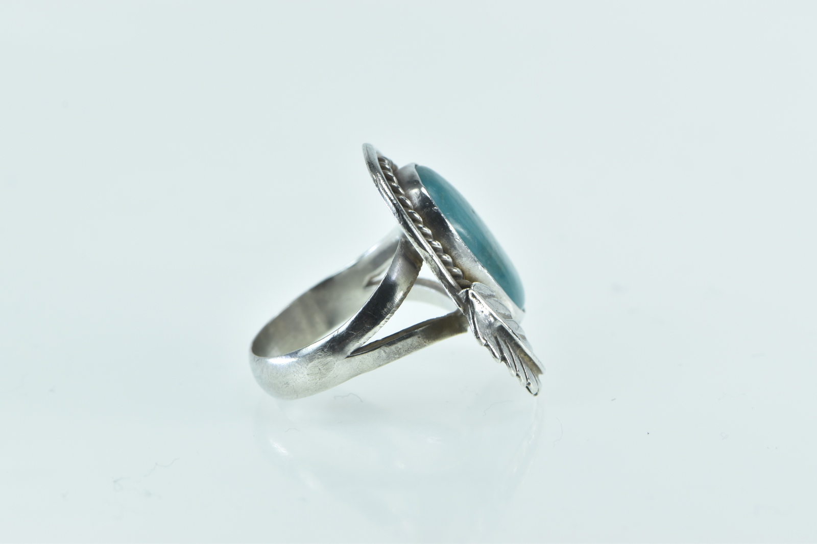 Item:  Sterling Silver Ornate Turquoise Southwestern Leaf Feather Ring, Size 6.25