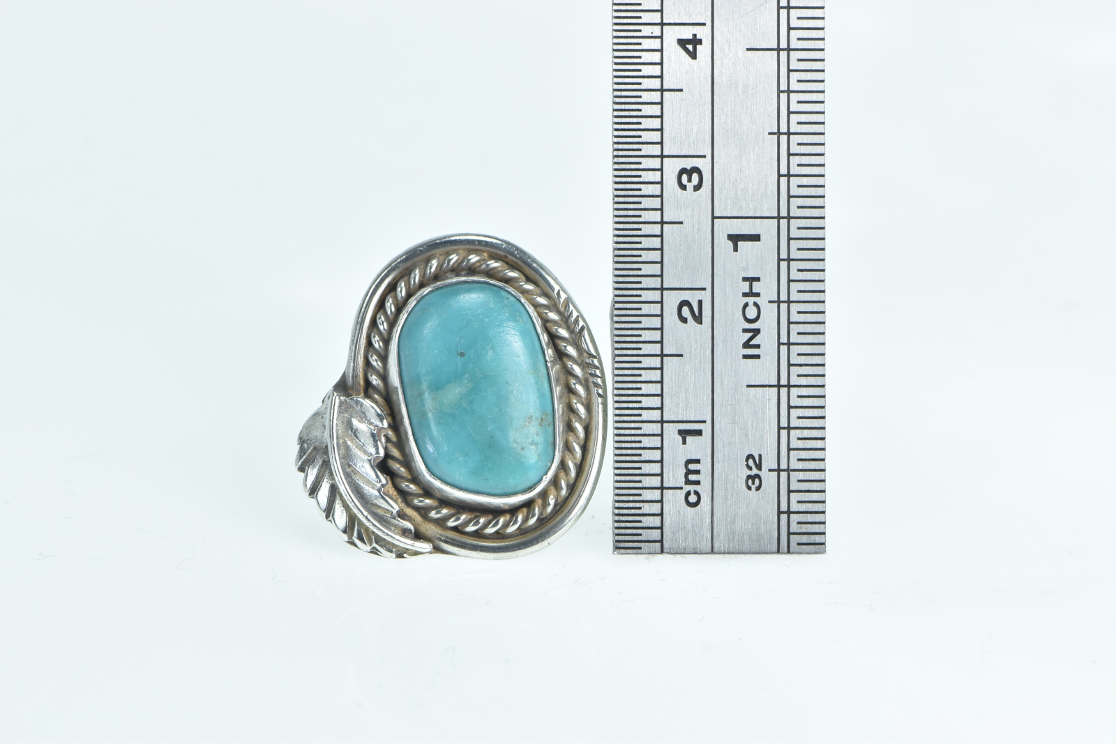 Sterling Silver Ornate Turquoise Southwestern Leaf Feather Ring, Size 6.25