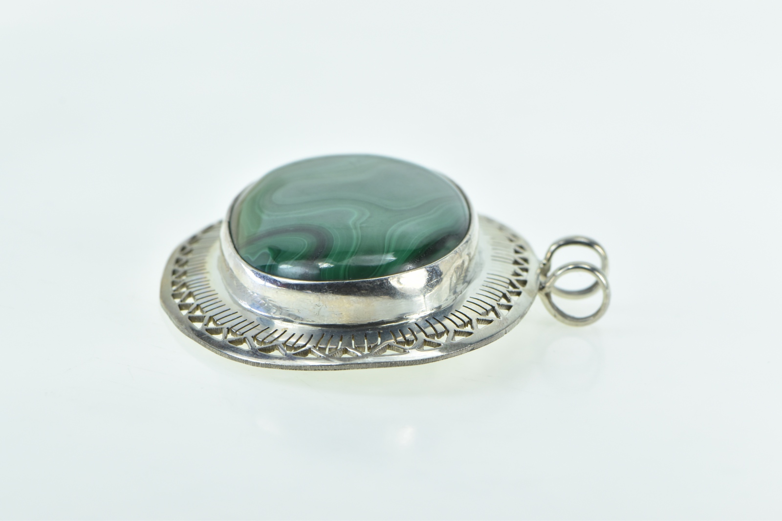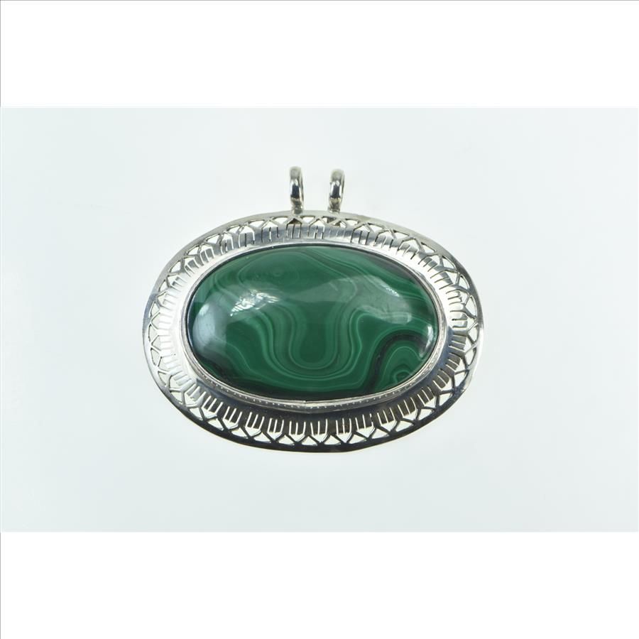 Item:  Sterling Silver Oval Malachite Cabochon Southwester Statement Pendant