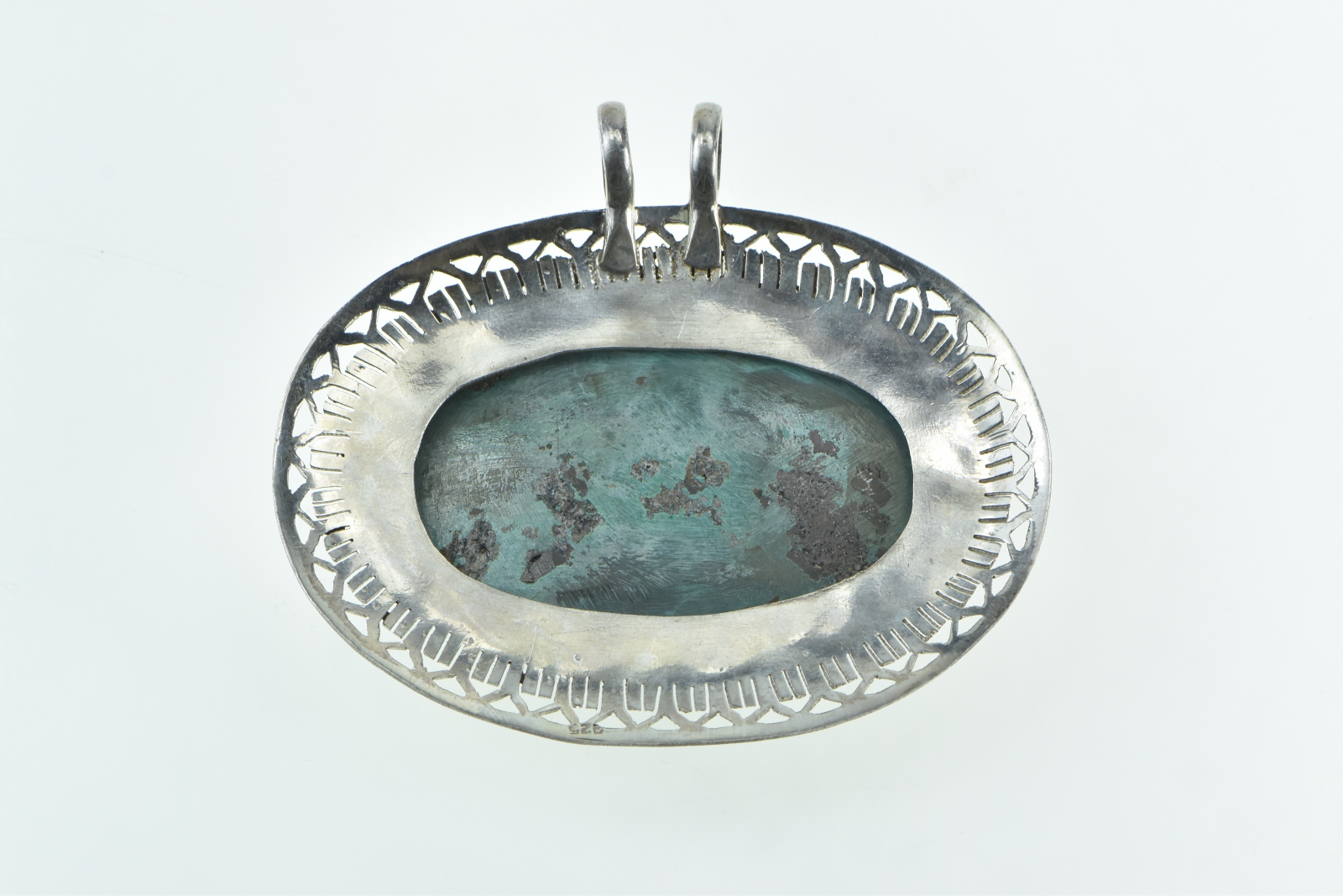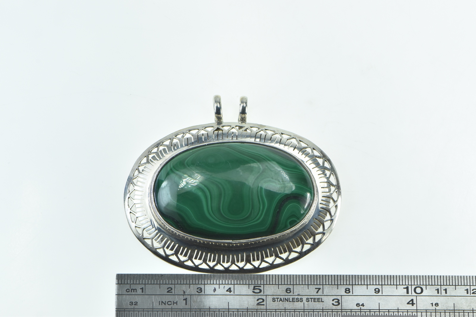 Sterling Silver Oval Malachite Cabochon Southwester Statement Pendant