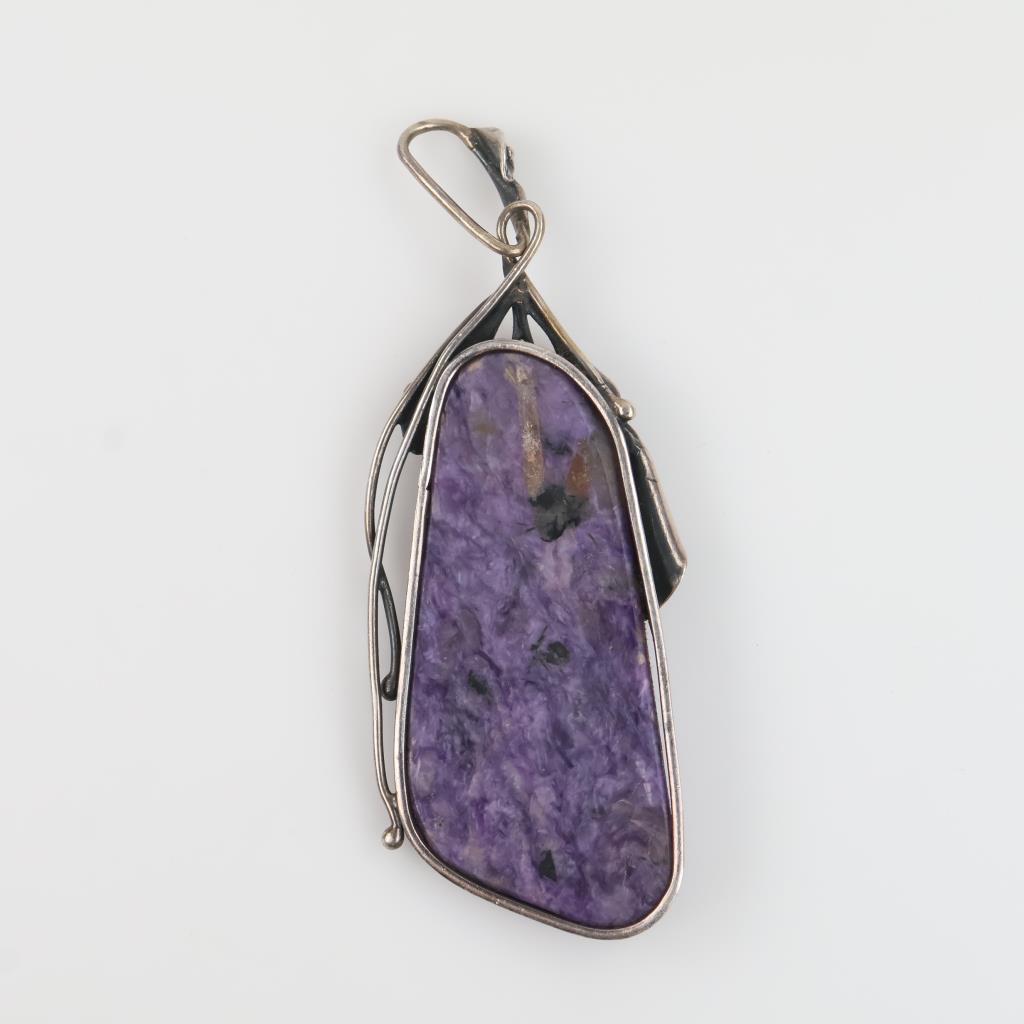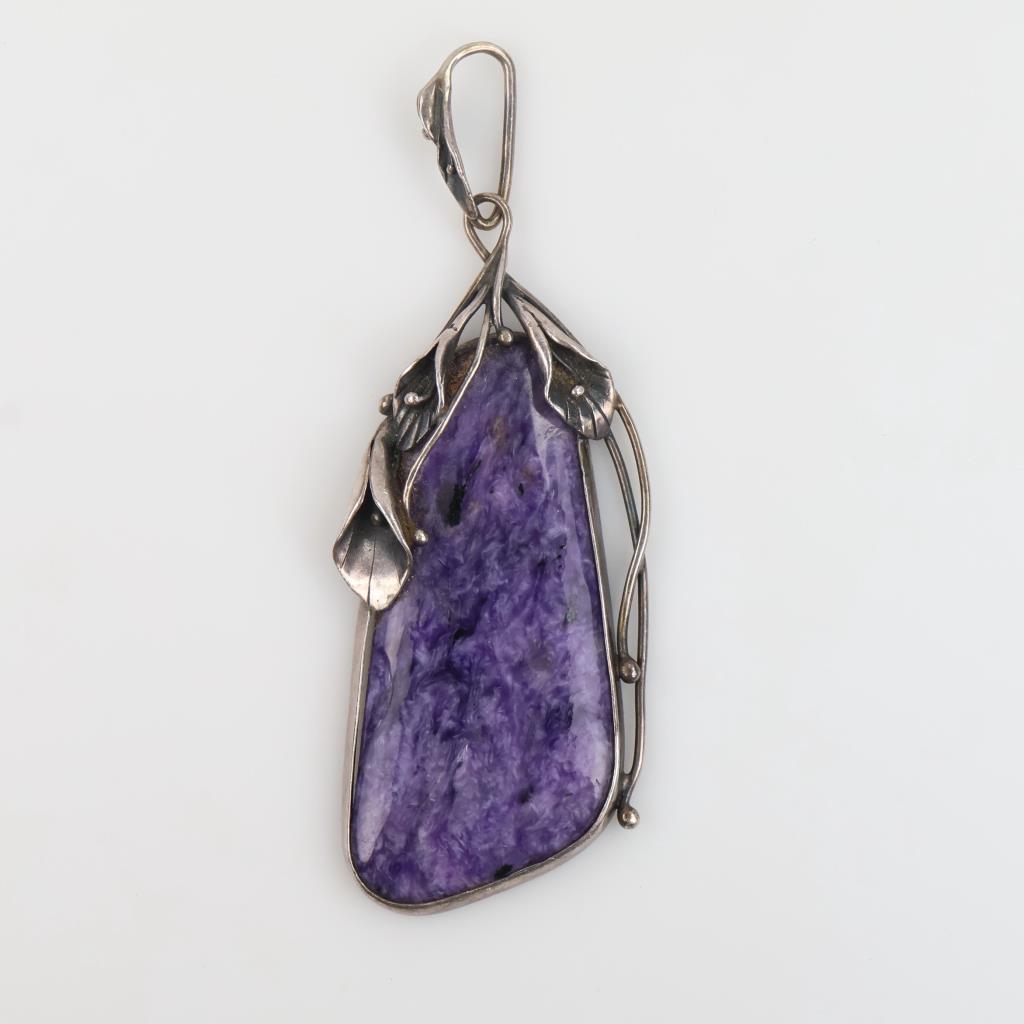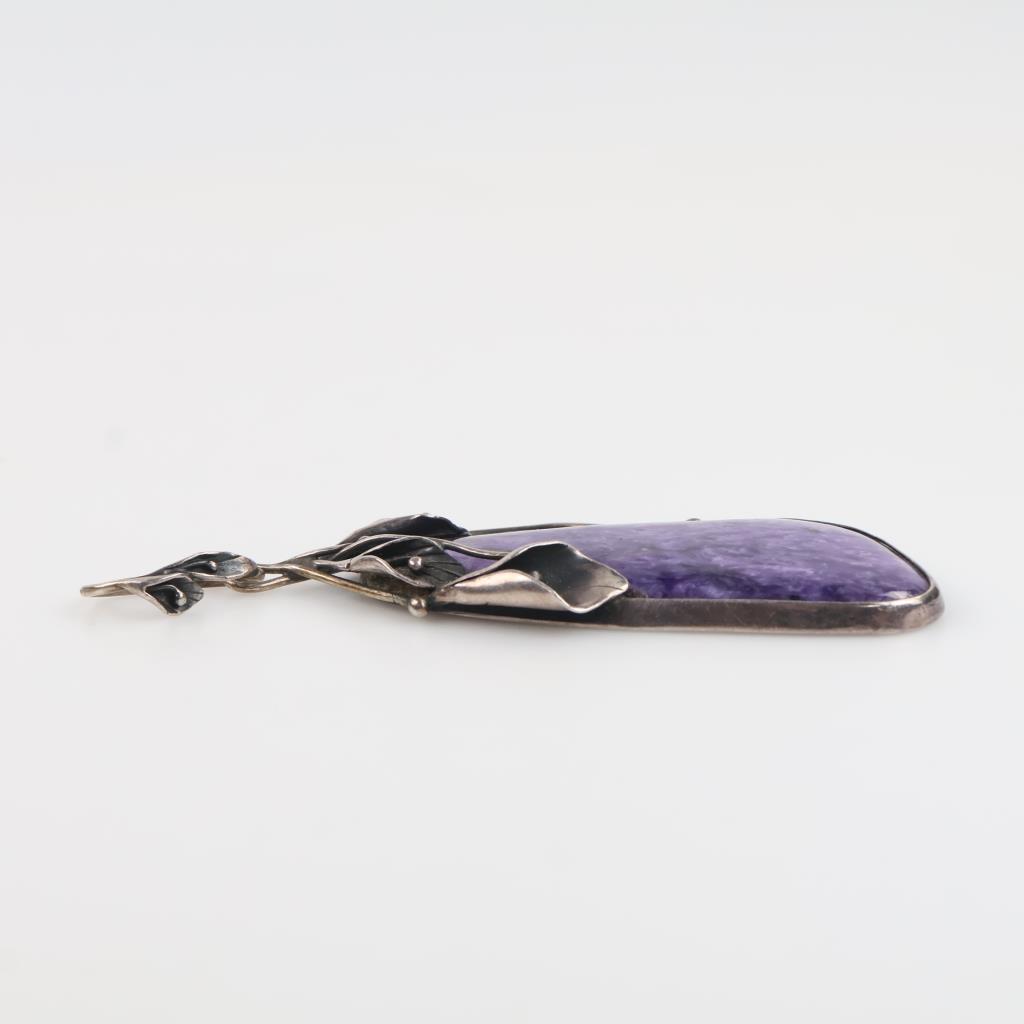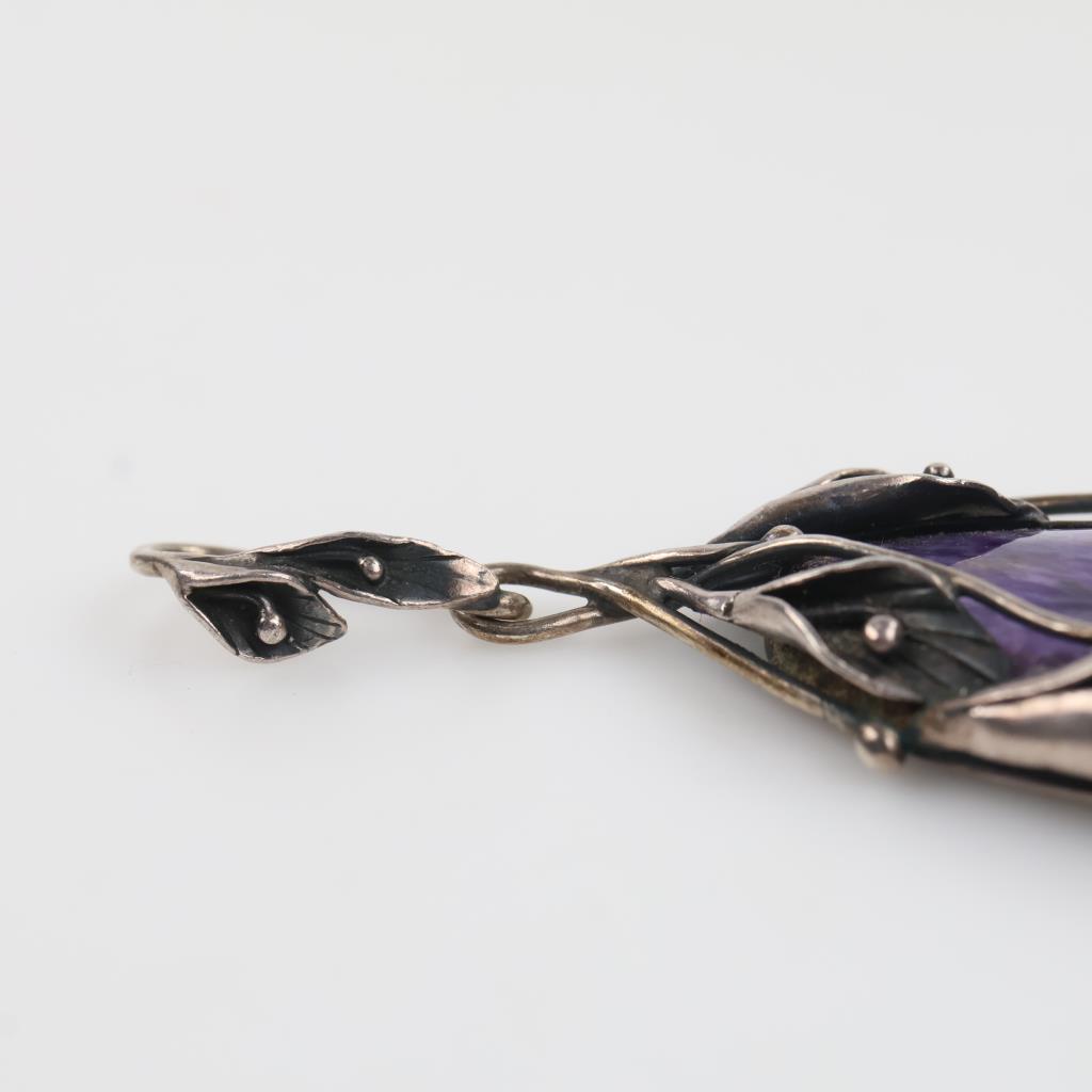 Sterling Silver Purple Stone Art Nouveau Flower Pendant