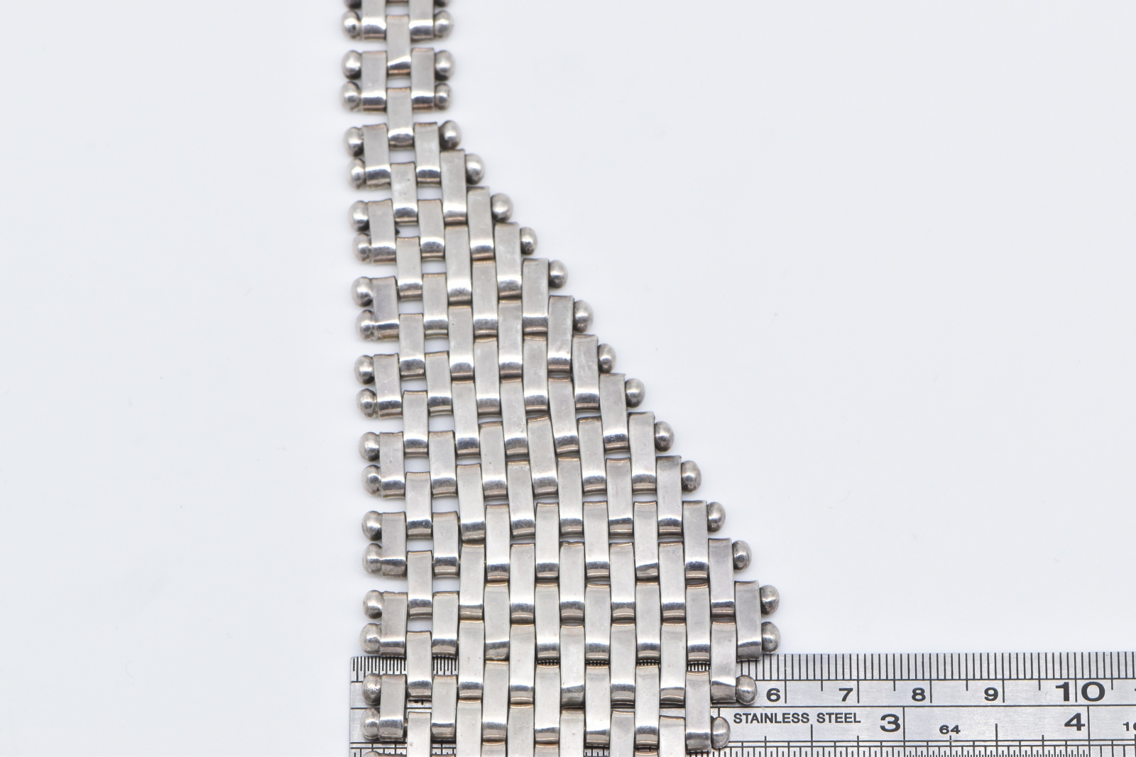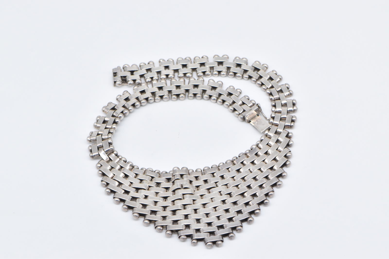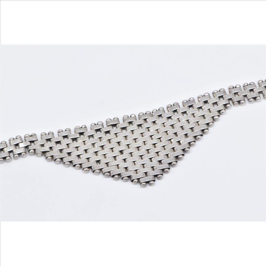 Item:  Sterling Silver Squared Chain Link Banded Statement Bib Necklace 17.25"