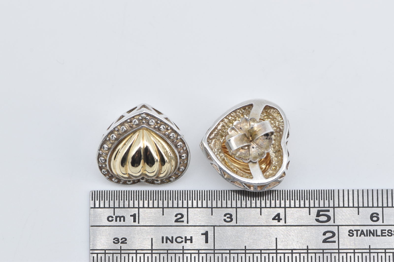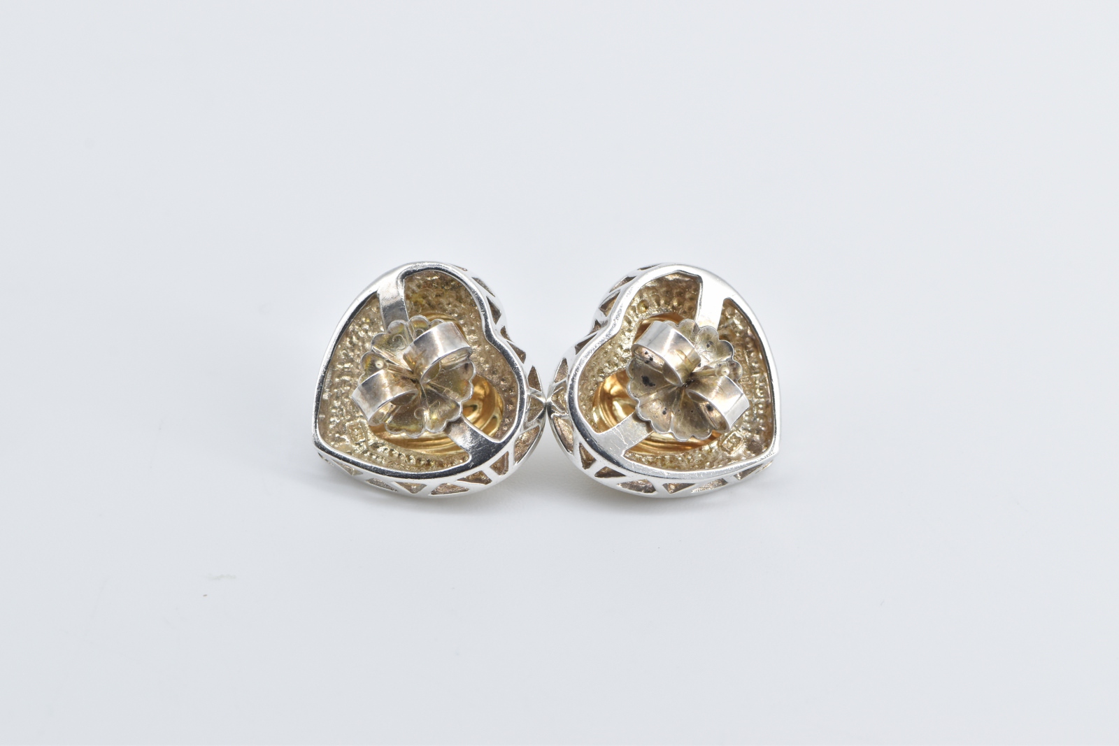 Item:  Sterling Silver Two Tone Puffy Heart Love Symbol French Clip Earrings