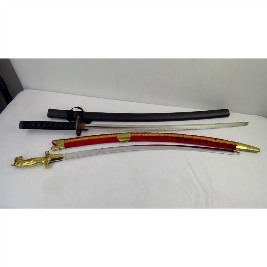 Sword 41" With Black Sheath, And Sword 37" With Golden Animal Handle, 2 Pieces
