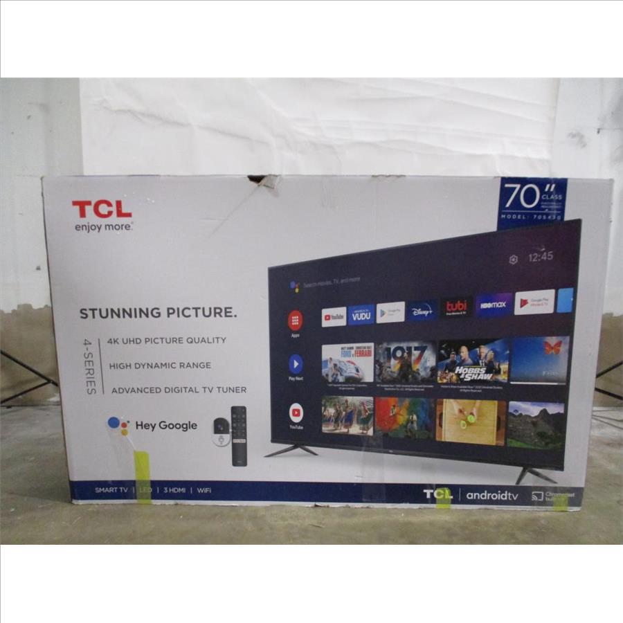 Get a great deal with this online auction presented by PropertyRoom.com on behalf of a law enforcement or public agency client. Model: ANDROID TV 705430 Screen Size: 70" Date of Manufacture: 2021 Measurements: Base: YES Remote Control:YES Power Cord: YES Physical Condition: Good, scratches, nicks. Testing Results: Item was tested for power only and it powered on, displayed menu. Input and output ports were not tested and may be non-functional. Item is sold "As Is".