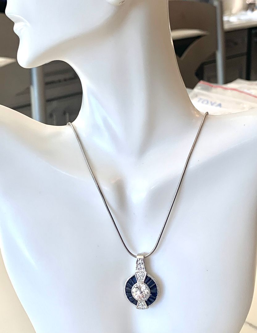 TOVA Designer .925 Sterling Silver Sapphire & Diamonique Diamond Necklace