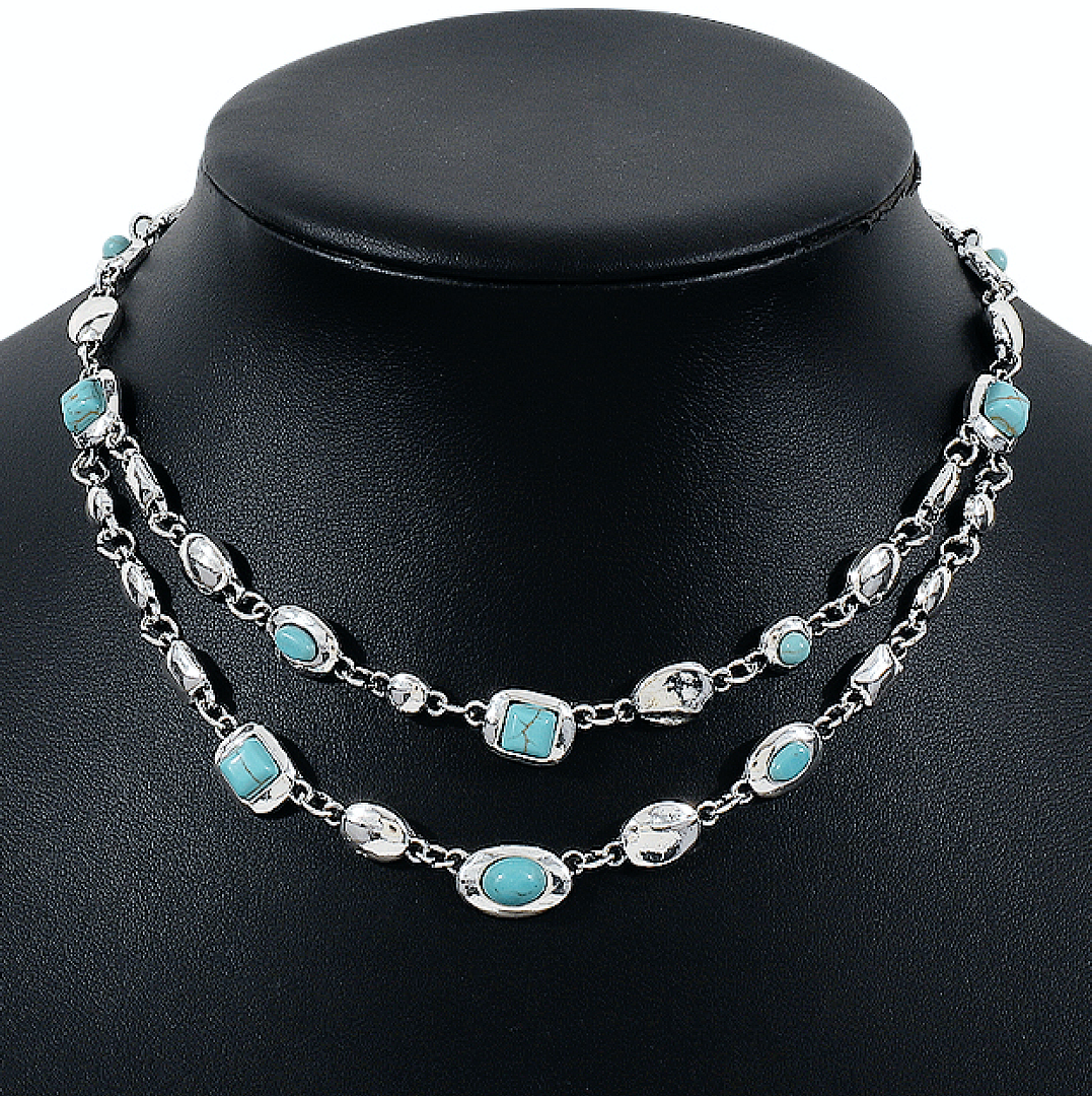 Turquoise & 18k White Gold Overlay Layering Necklace
