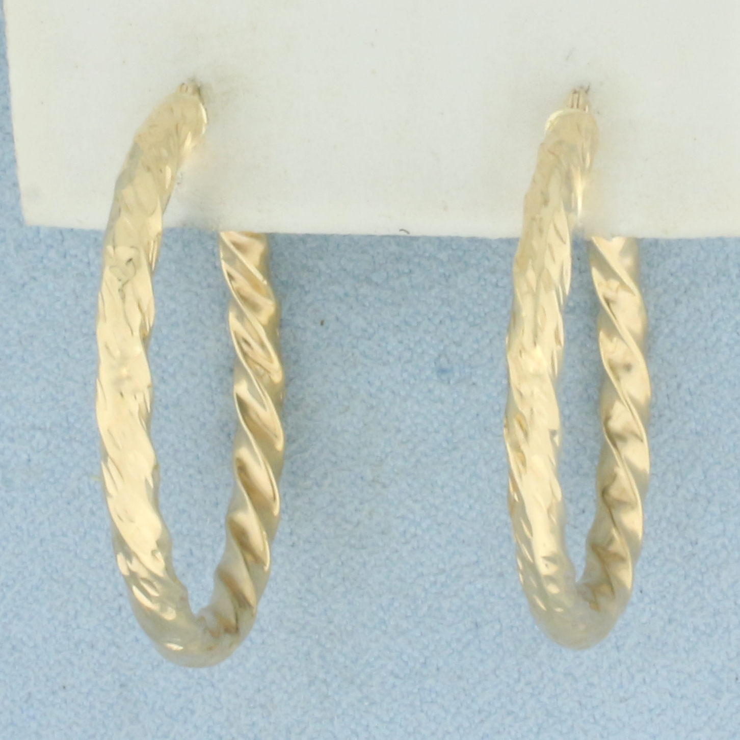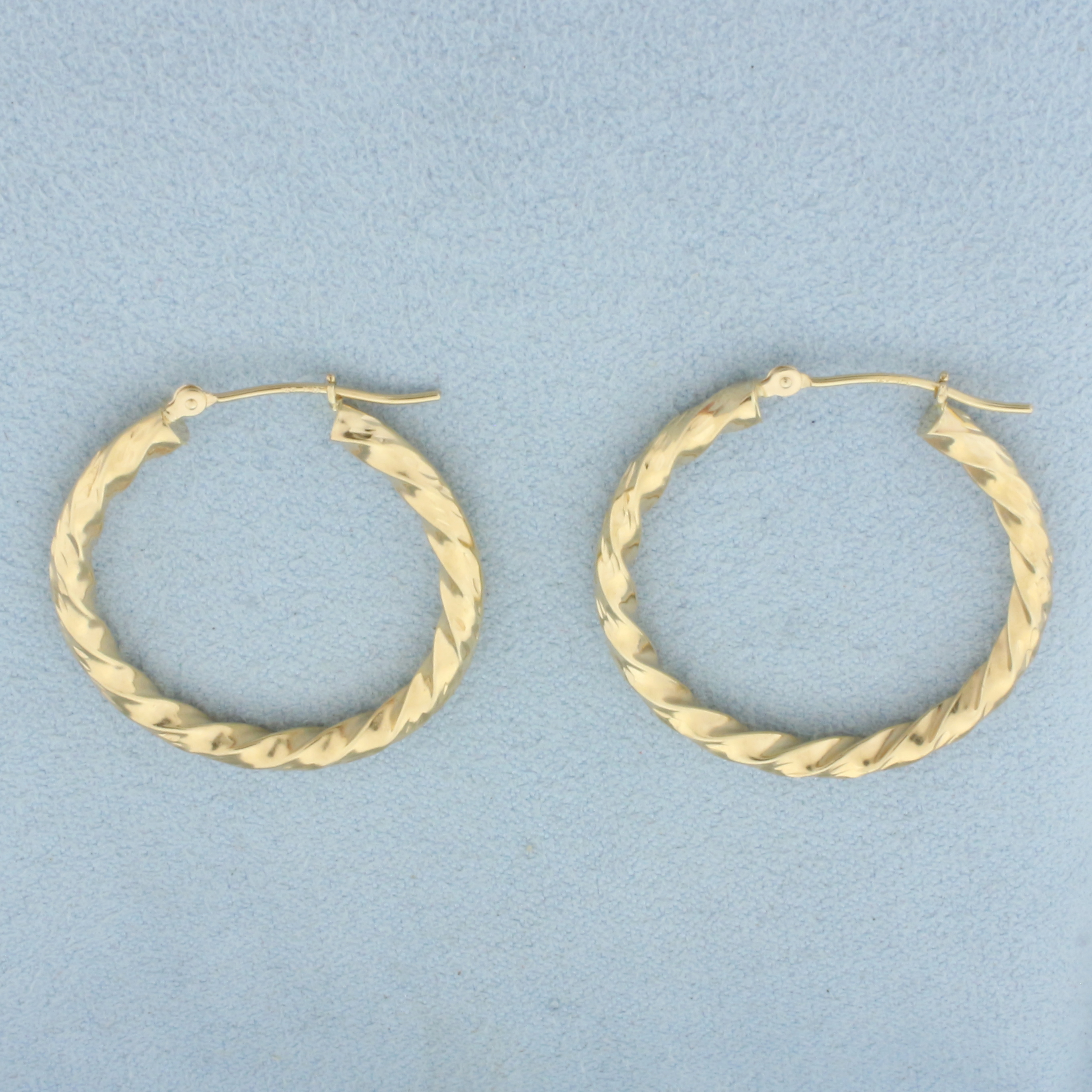 Twisting Design Hoop Earrings in 14k Yellow Gold
