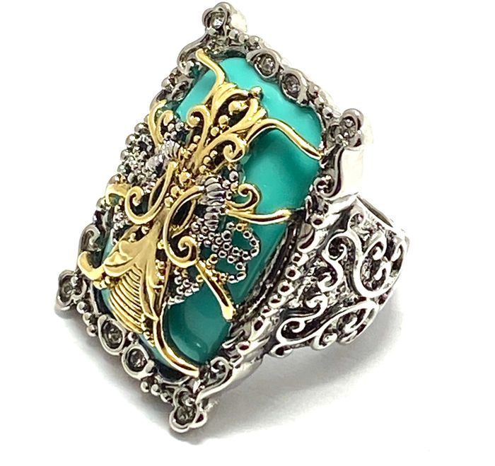 Two-Tone, Turquoise & White Zircon Ring sz6