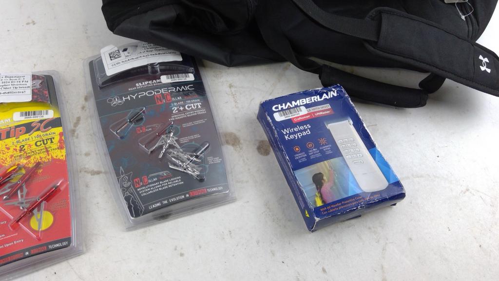 Get a great deal with this online auction presented by PropertyRoom.com on behalf of a law enforcement or public agency client. - Items include: Dufflebag, Arrow tips, Knifes, Wireless keypad and more