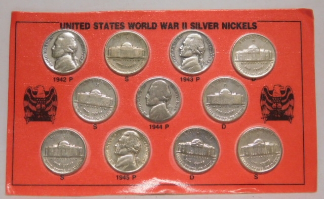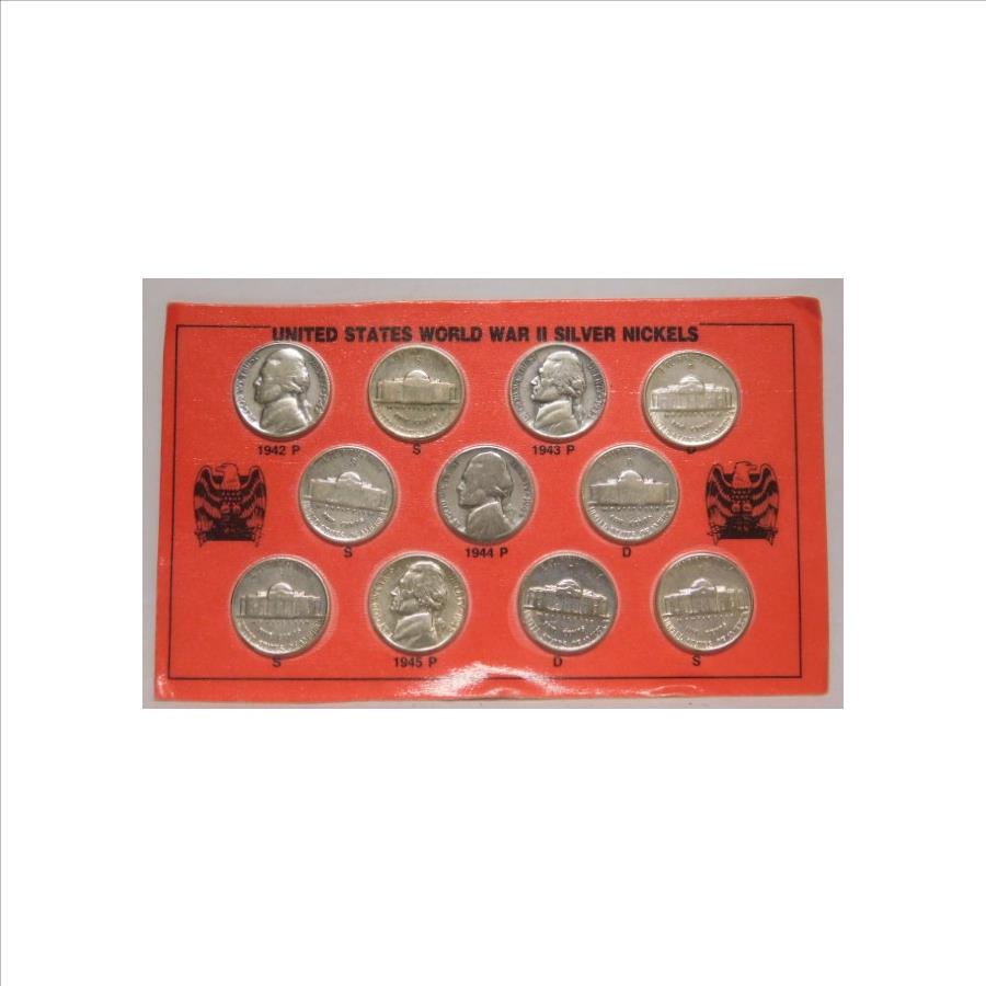 United States World War II Silver NIckels - 11 Nickel Set - 1942 P/S, 1943 P/D/S, 1944 P/D/S and 1945 P/d/S
