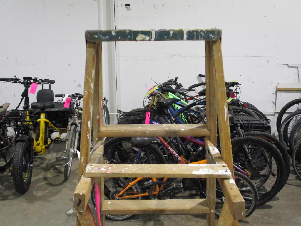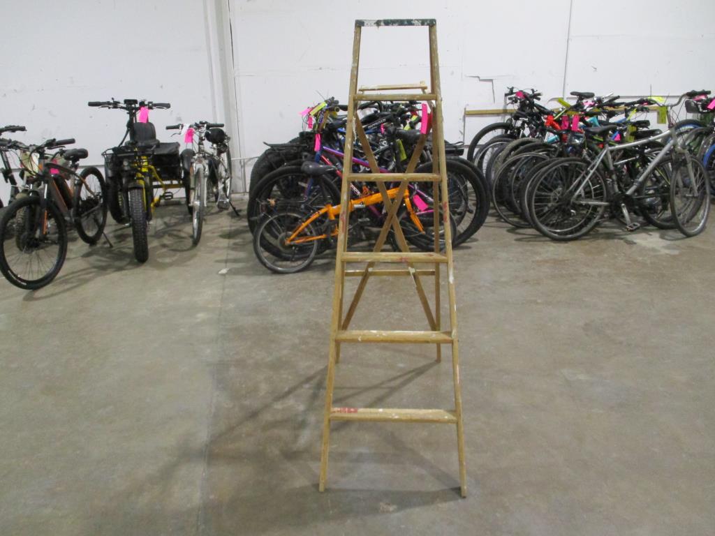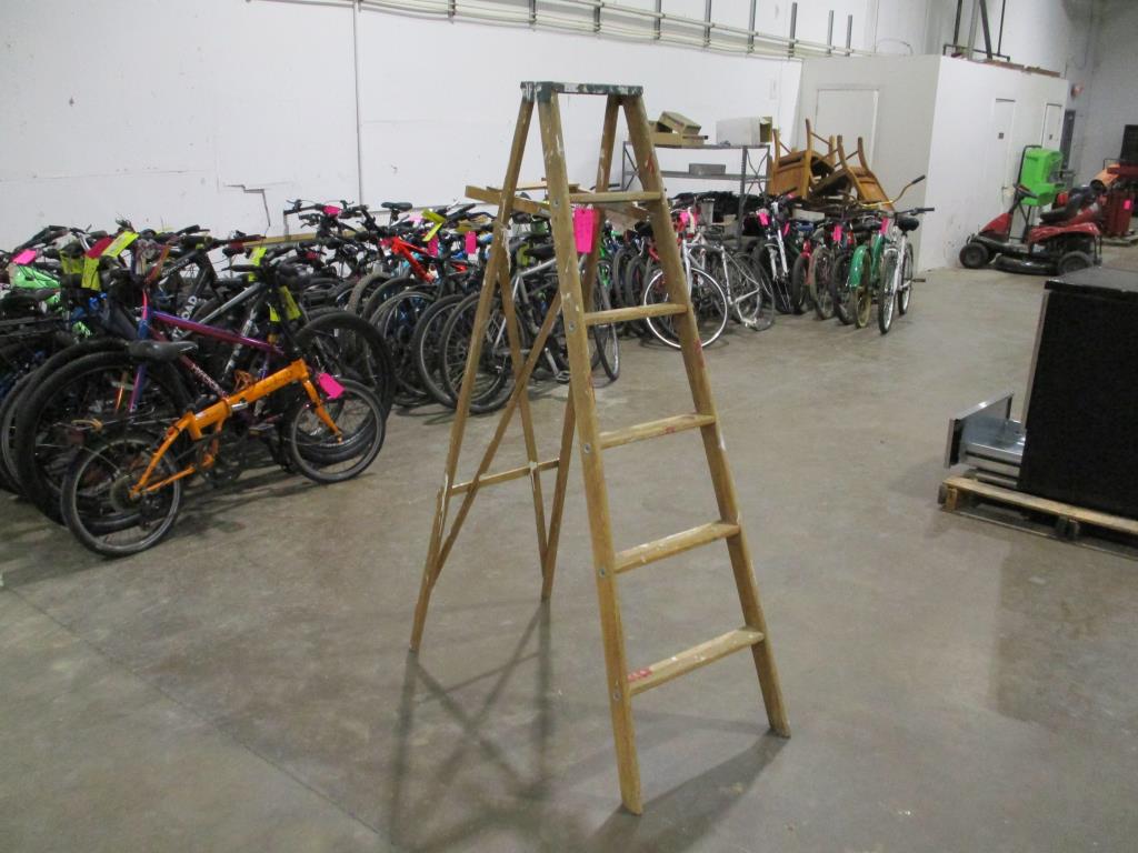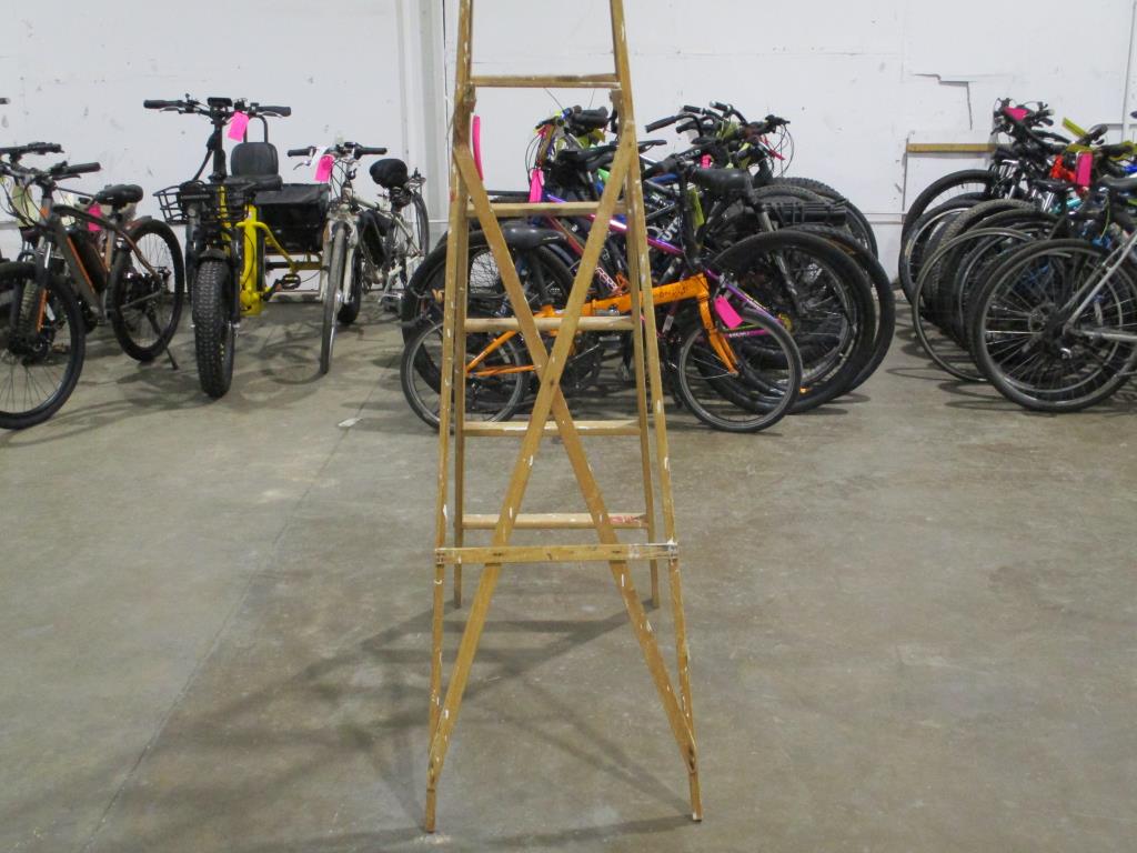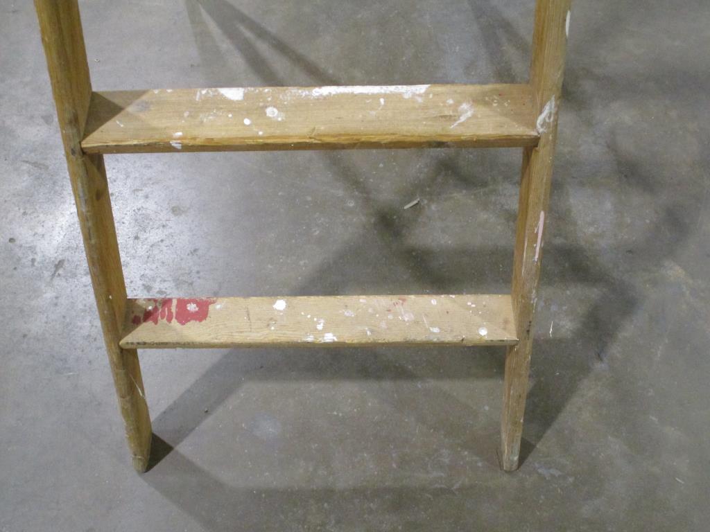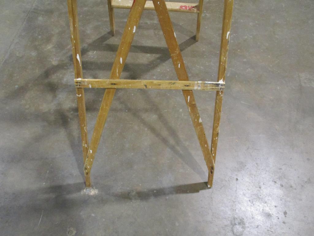 - Item info: Made of wood, 6 steps, metal top, broken tool tray, x shape support on back
