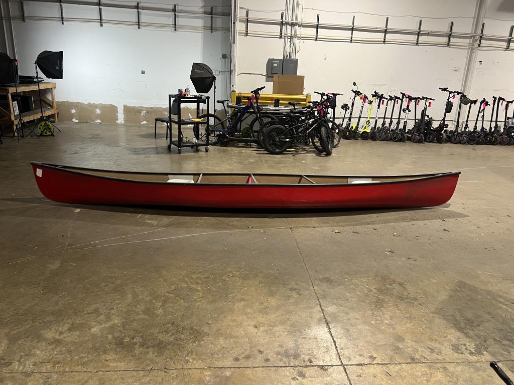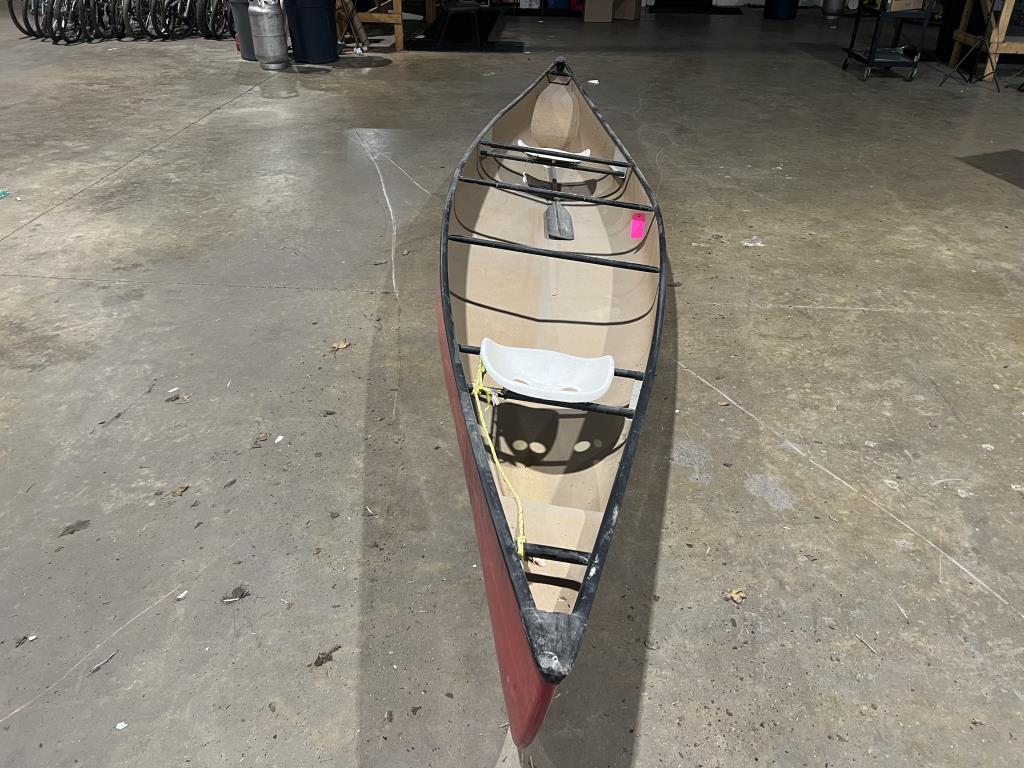 - Item info: 2 seats, 3 center bars, plastic white seats, single paddle, red fiber glass, dual carry handles.