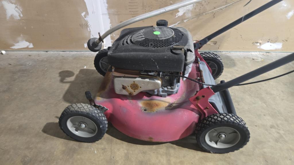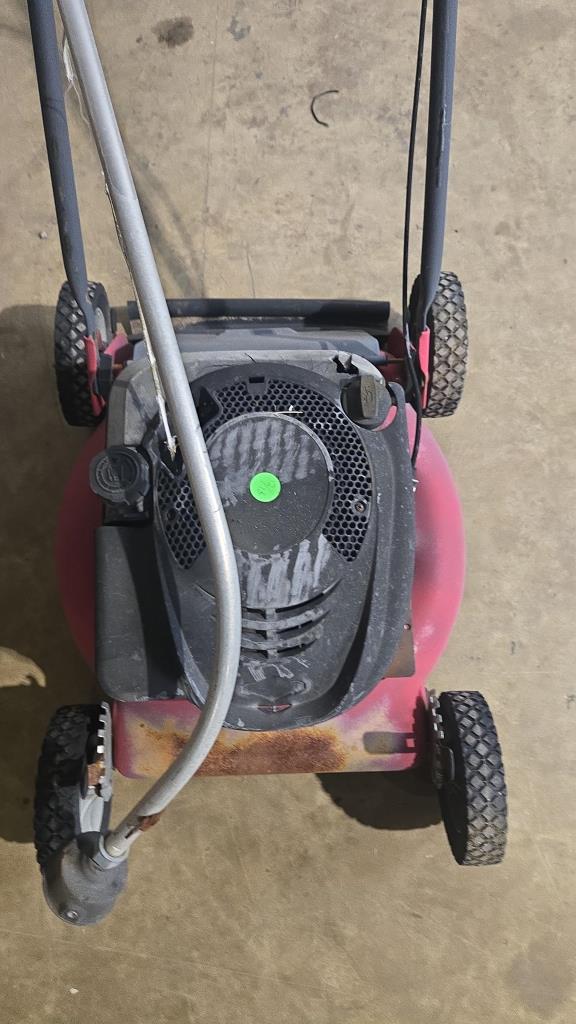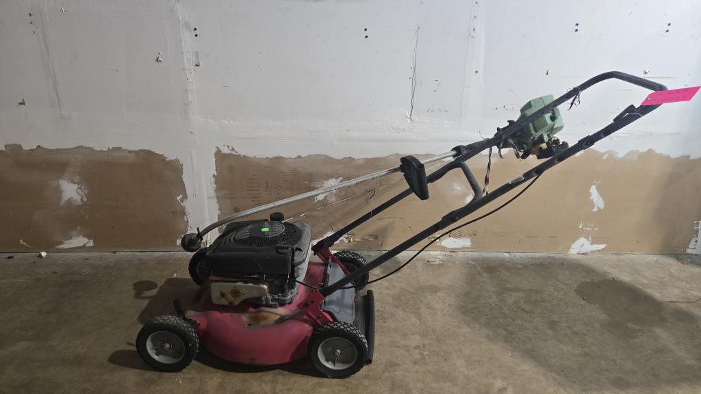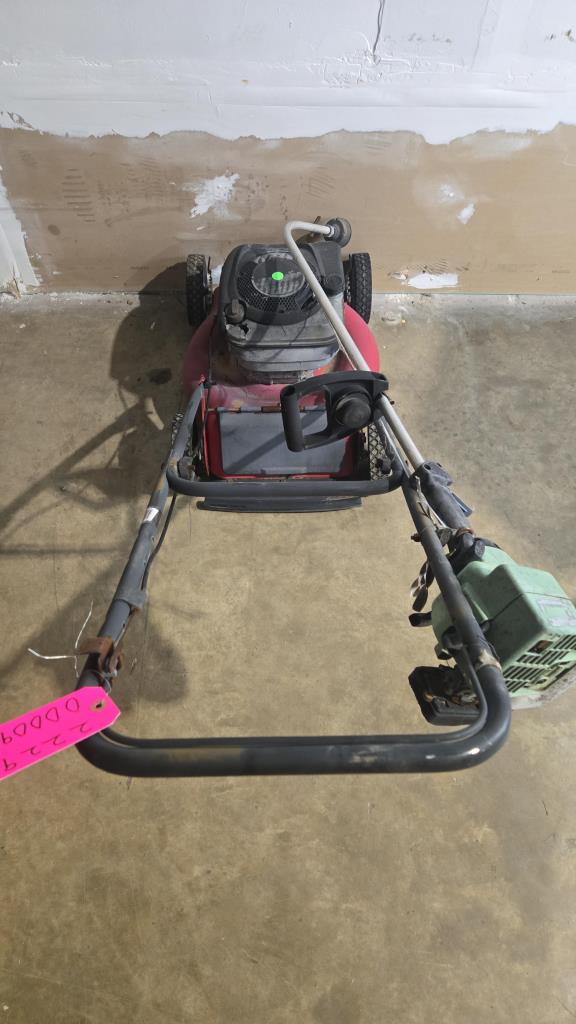 - Item info: red and black in color, pull start, 140cc, comes with weed wacker - gas powered