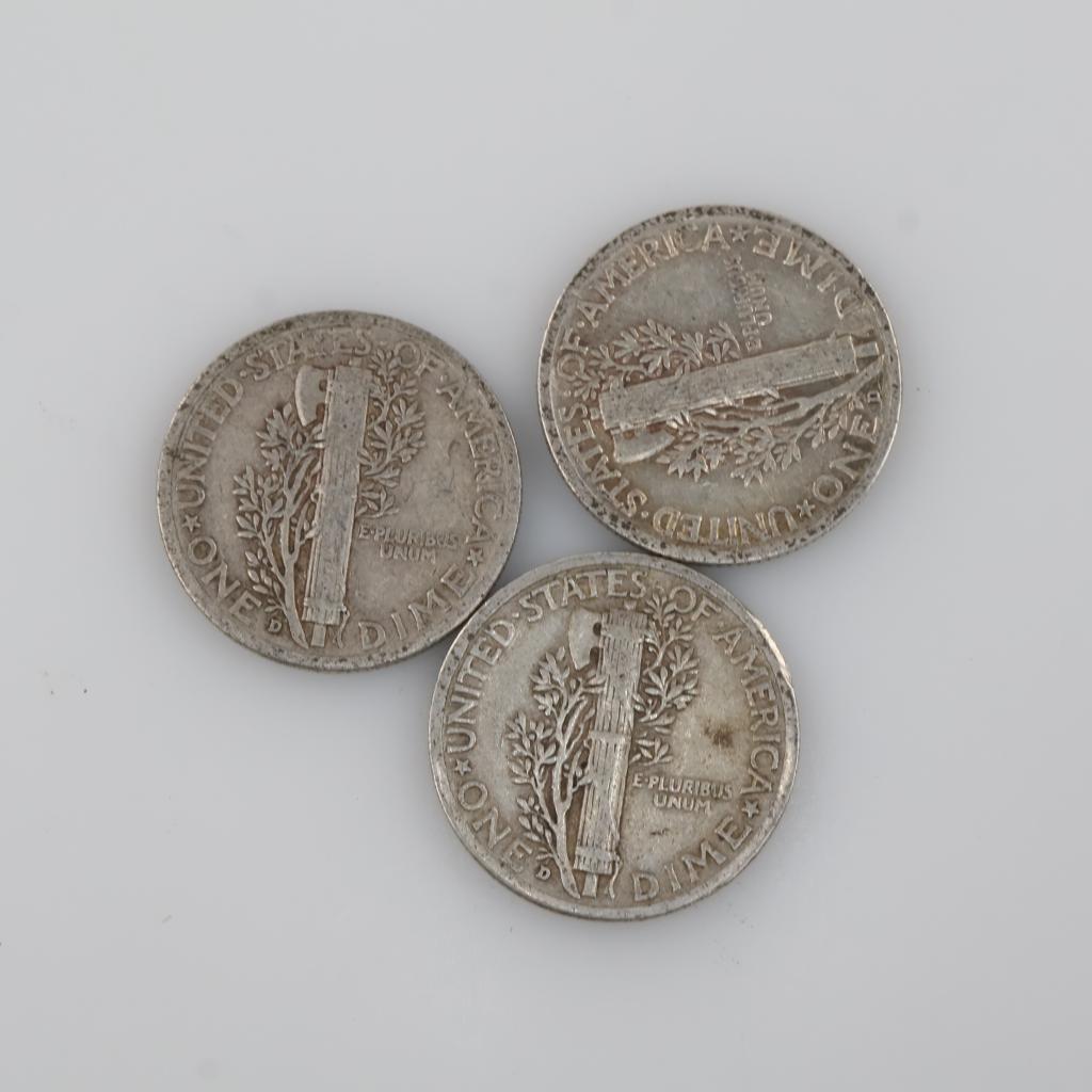 US 1943-D Mercury Silver Dime, 3 Pieces