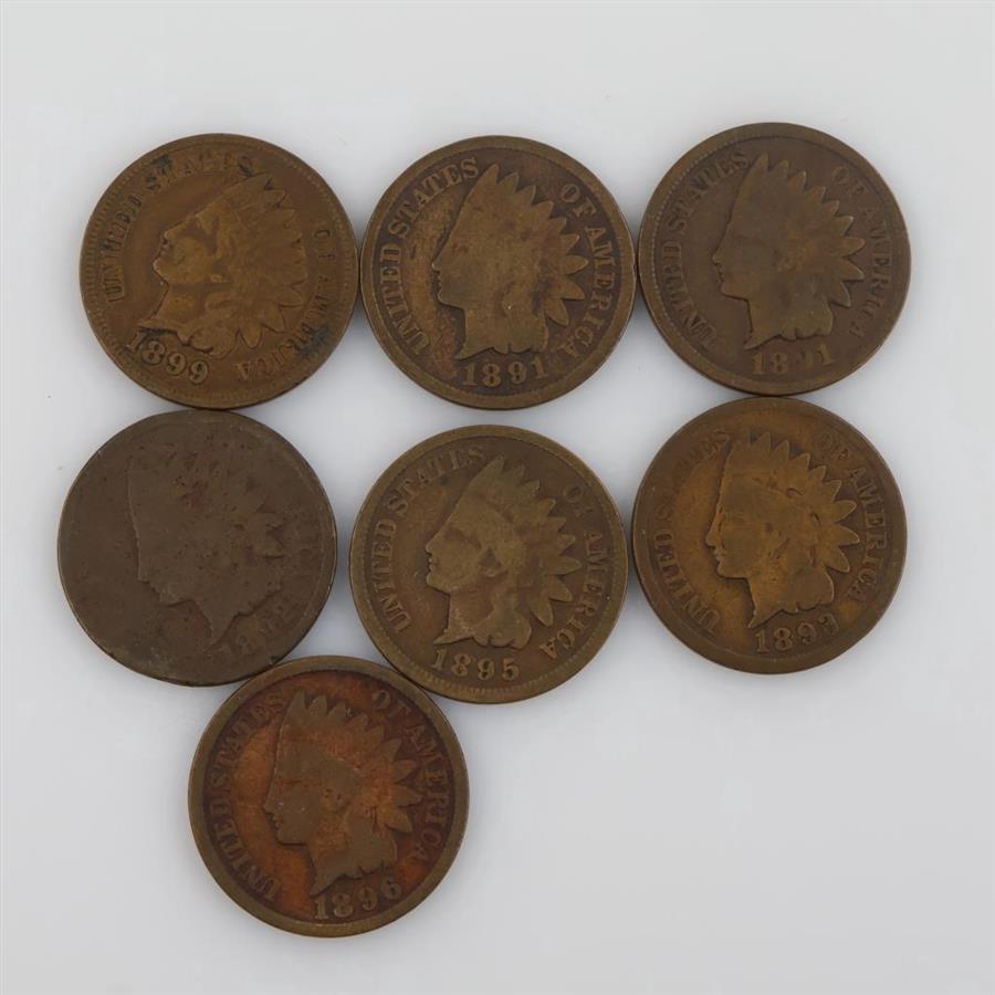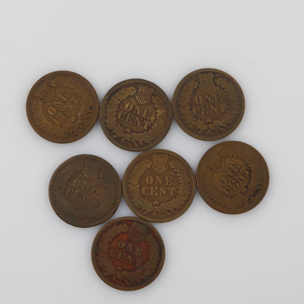 US Indian Head Pennies, 7 Pieces