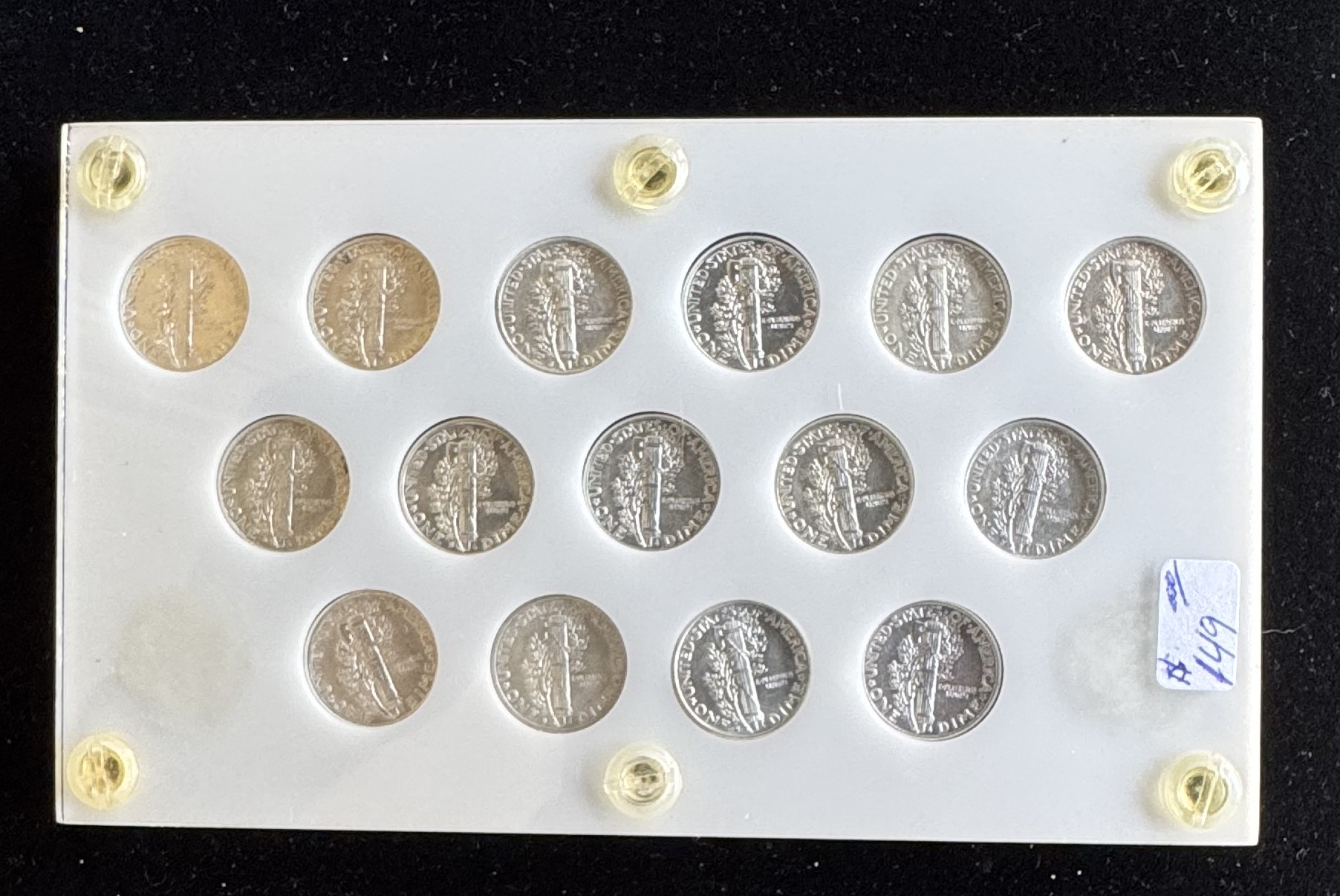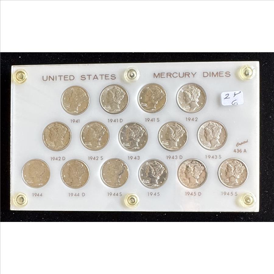 U.S. MERCURY DIME COLLECTION SET, HIGH QUALITY COINS IN A HARD BACK CASE
