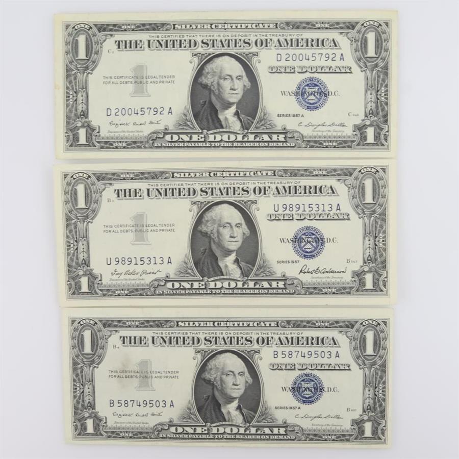 US Silver Certificate One Dollar Blue Seal, 3 Pieces