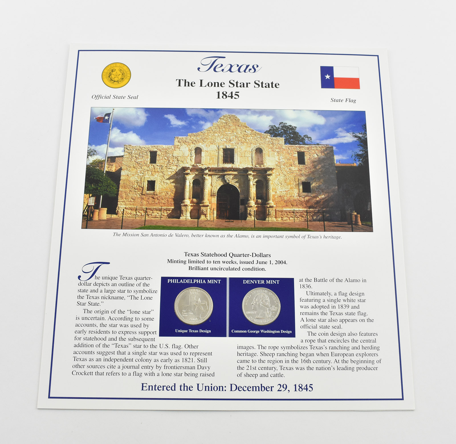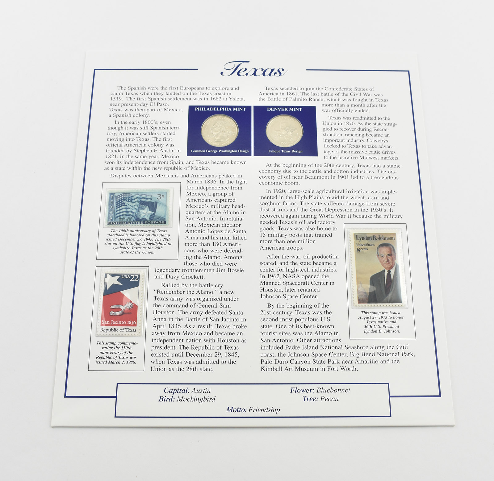 US Stamp & 2 CoinState Quarter Beautifully Displayed Coin Set Story Board