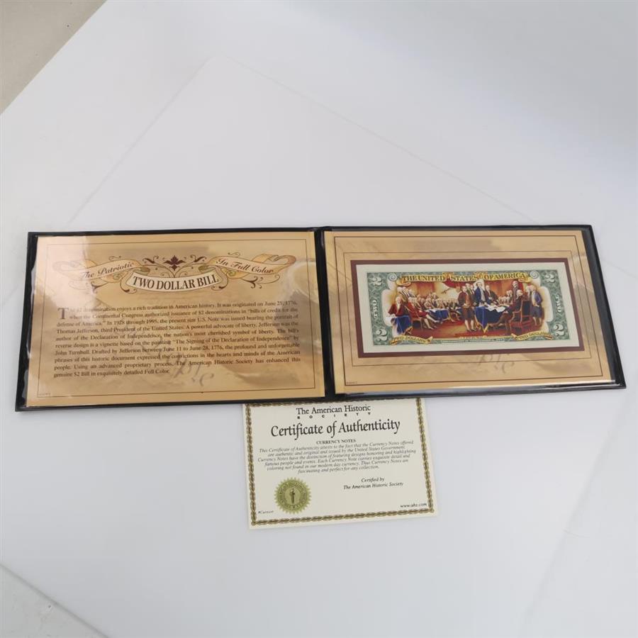US Two Dollar Bill Colorized "Declaration Of Independence" W/COA