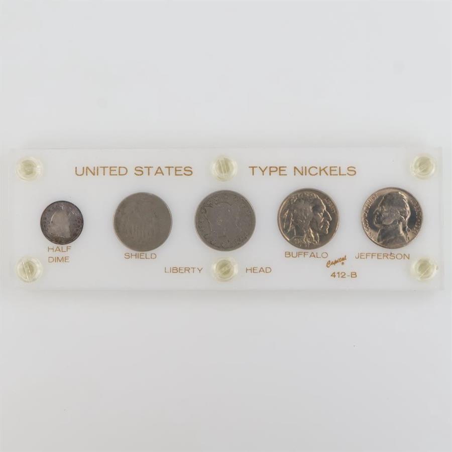 US Type Set Nickel 5 Coins, Includes Silver Half Dime