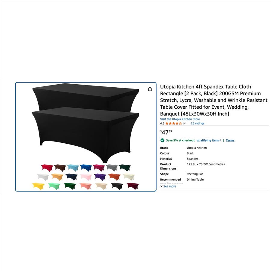 Utopia - 2 Pack - 4 ft Spandex Table Cloth - Rectangle